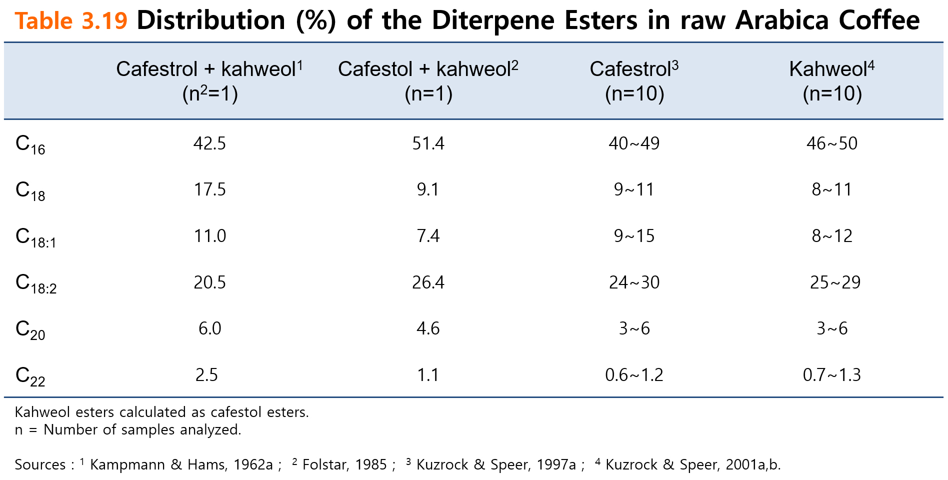 - Pettitt B.C. Jr. (1987) Identification of the diterpene esters in arabica and canephora coffees.
