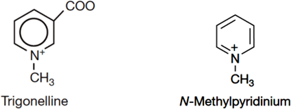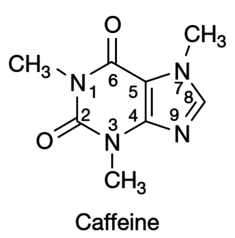 Caffeine 즉 1,3,7-trimethyl-xanthine은 a purine alkaloid인데, 커피 나무의 2次 代謝産物(secondary metabolite)이다 : 그 生合成은 xanthosinemonophosphate로부터 시작한다 [84]. 그 代射徑路에서, 후속의 메틸화 단계들 (methylation steps)이 여러 N-methyl transferases로 발생하며 methionine이 메틸기 供與體(methyl donor)가 된다 [85].