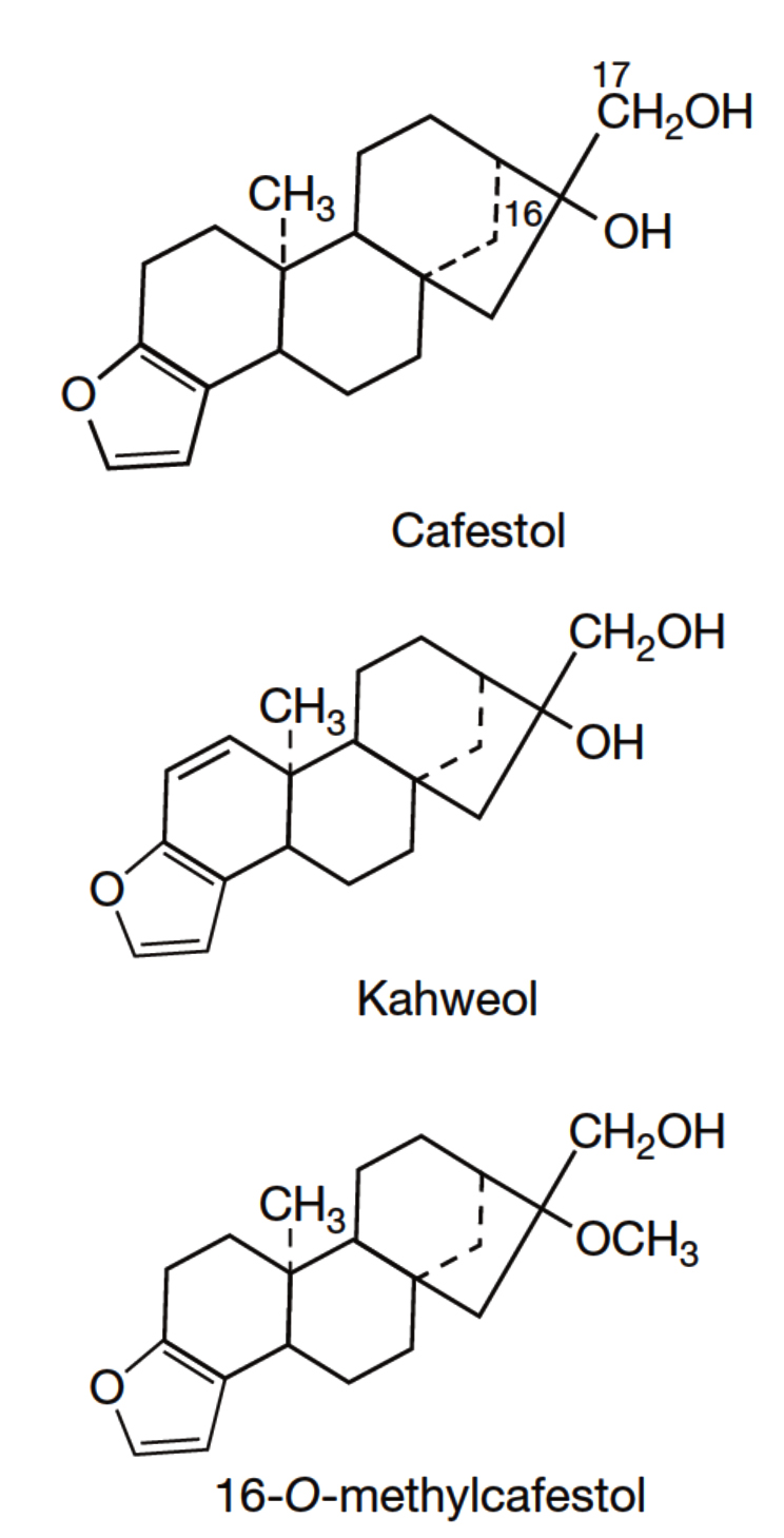 커피는 다른 씨앗 오일들에도 전형적인 많은 스테롤들(sterols)을 함유하고 있다.