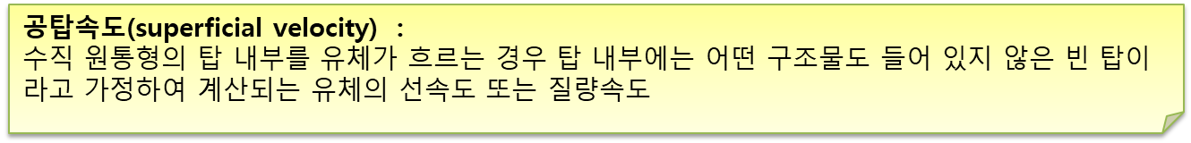⇒ 동일한 공탑속도 (superficial velocity)에서