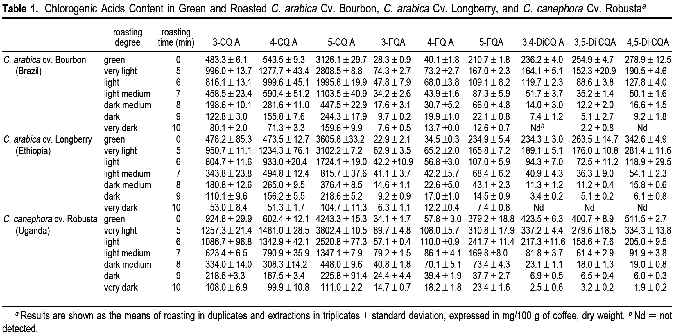 C. Canephora cv. Robusta from Uganda, 2002 crop이 commercial sources로부터 구입되었다.