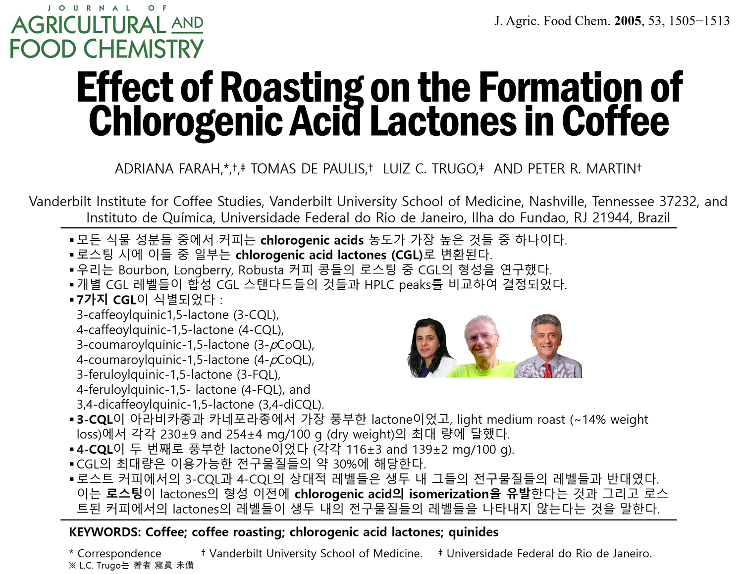 ⇒ CGL은 커피 품질의 중요한 속성인 커피 음료의 쓴맛(bitterness)에 상당히 공헌하는 것으로 발견되었다