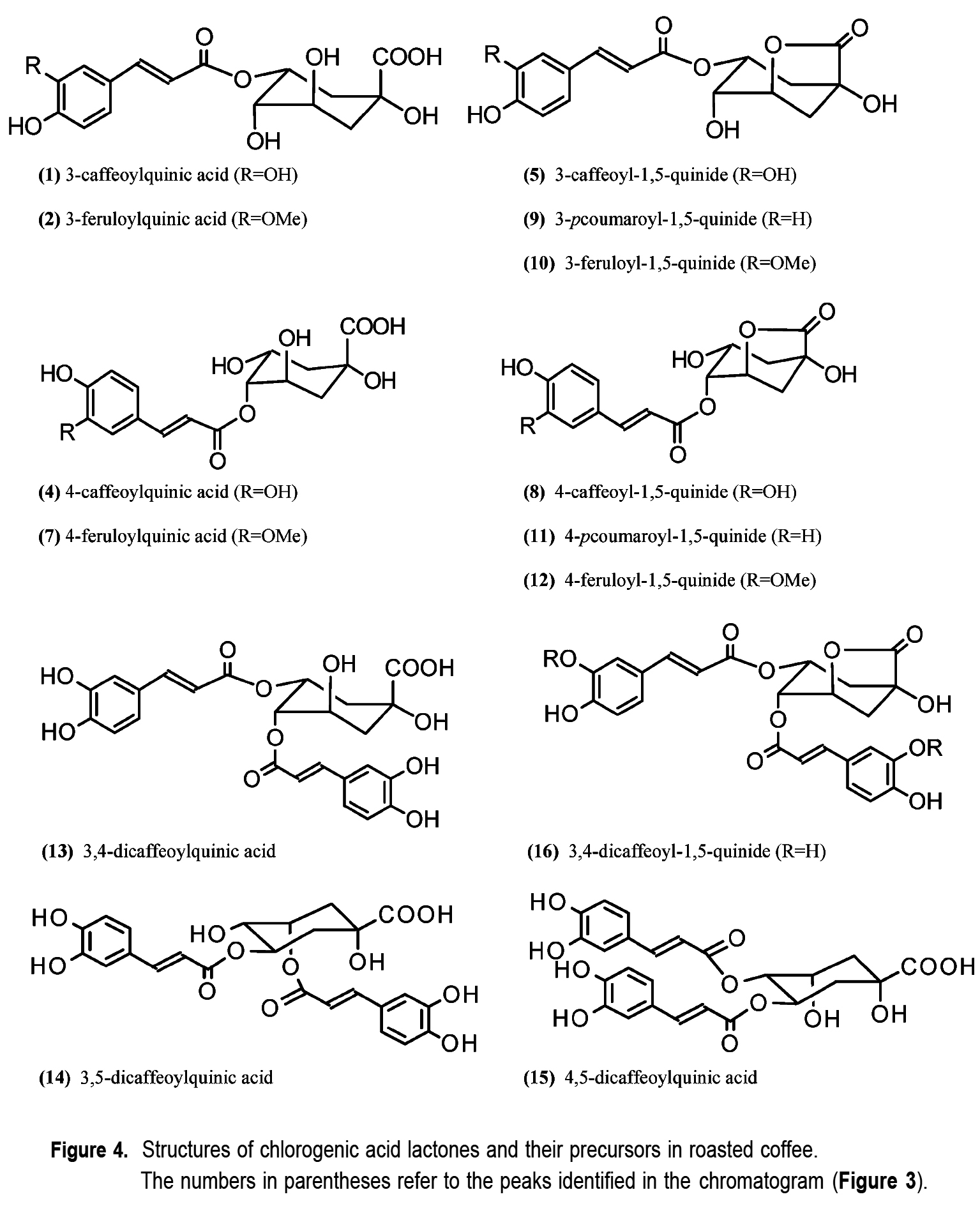 Isomers of quinic acid and quinide in roasted coffee.