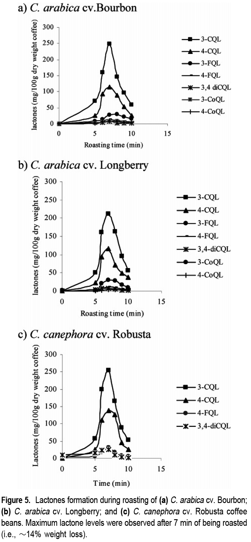 (35, Ginz & Enhelhardt 1995). - 커피에서의 CGL 형성과 보급에 대한 로스팅의 효과에 관한 데이터는 제한적이다.
