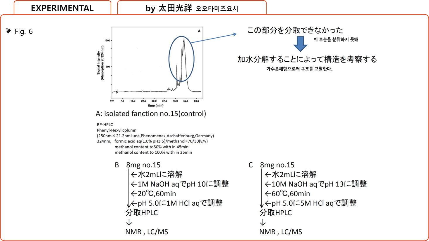 고도로 복합적이고 강렬하게 쓴 HPLC fraction이