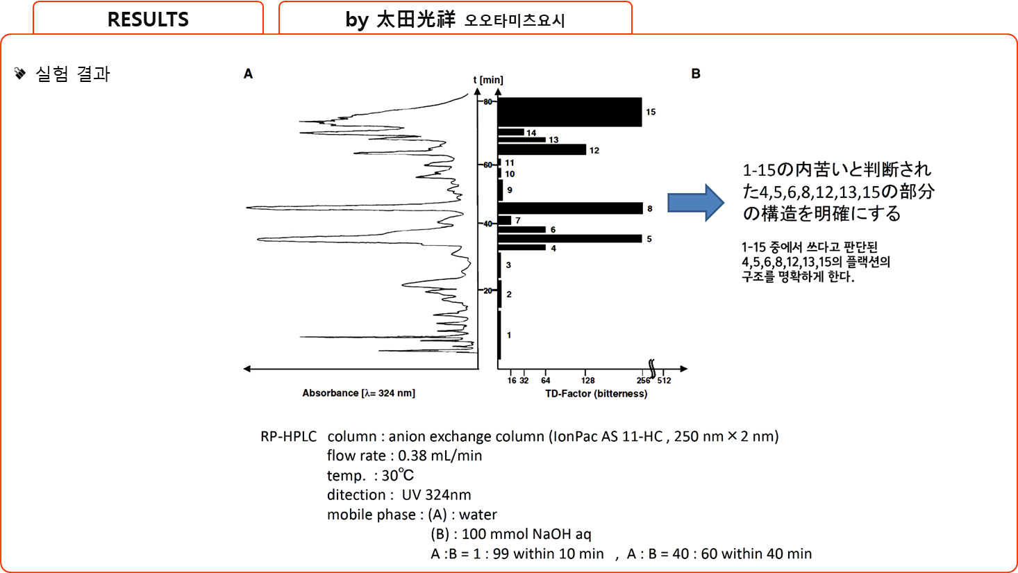⇒ 가장 강렬한 인간의 쓴맛 반응을 유도하는 성분의 화학 구조를 분리하고 결정하며,