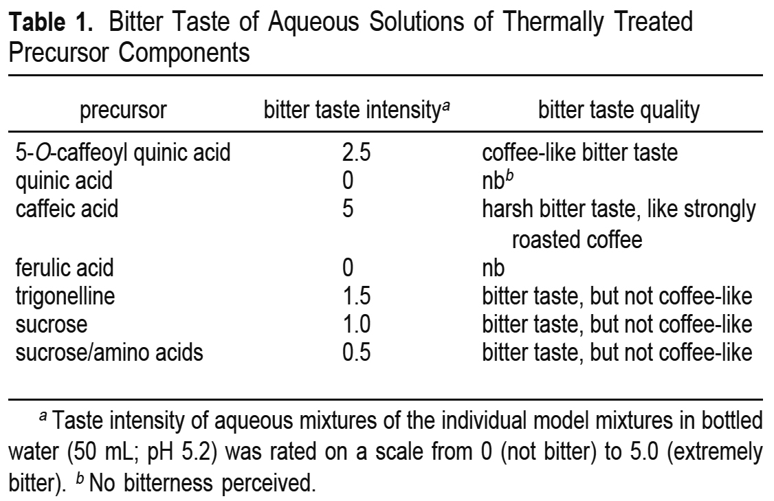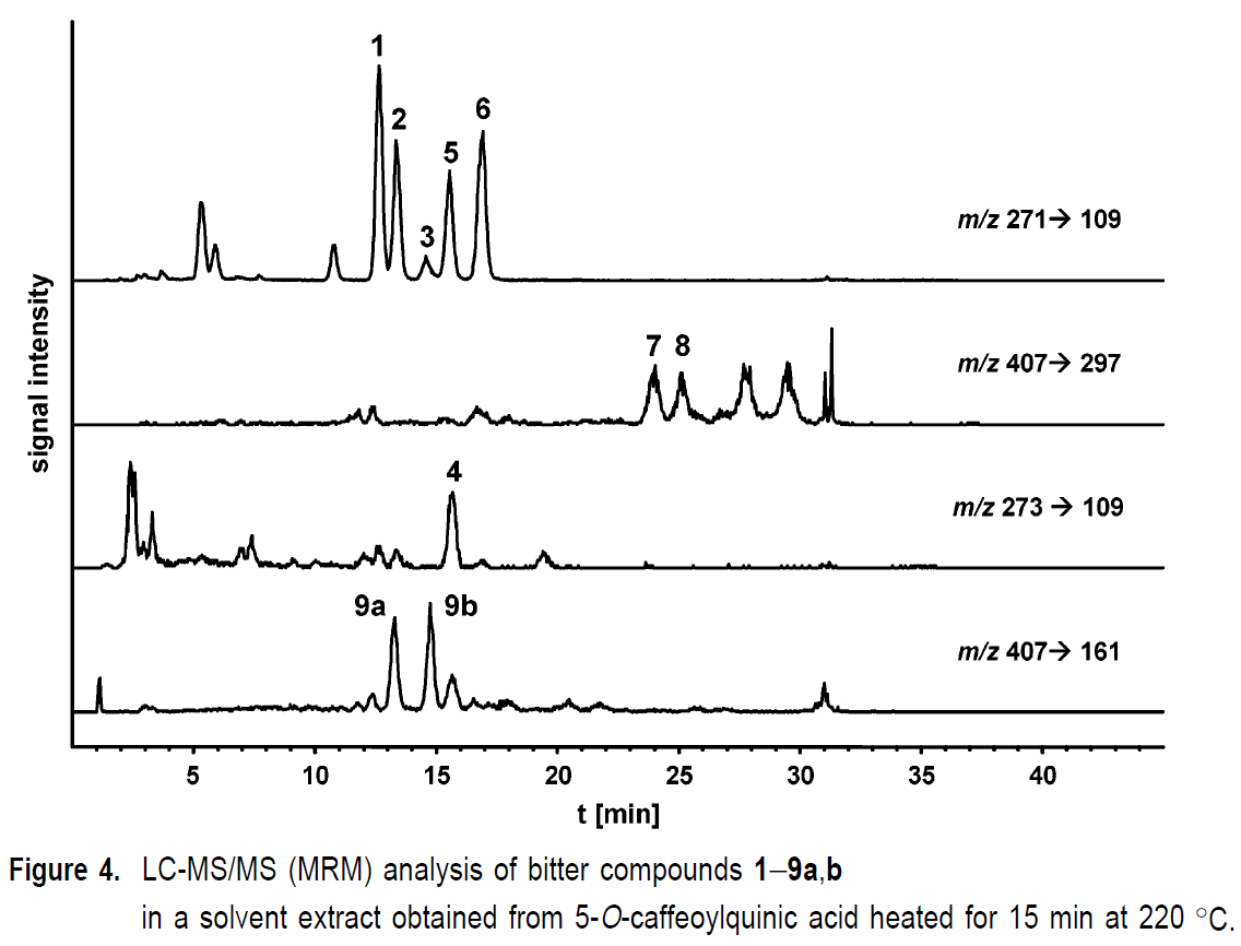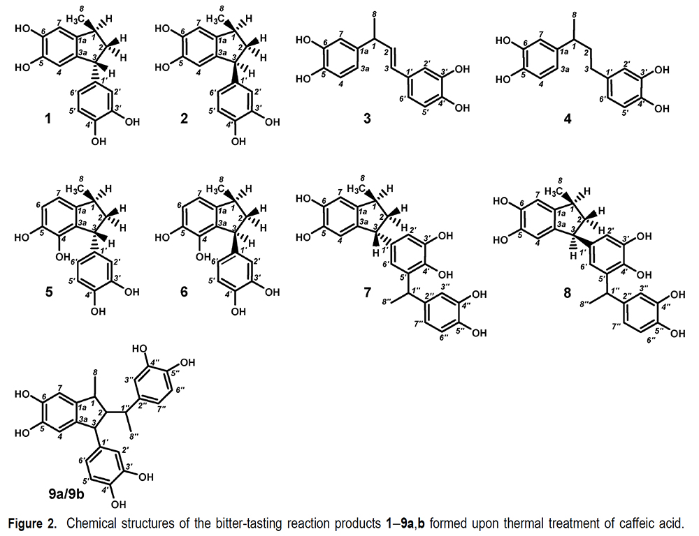사람의 쓴맛 검출 식역들이 결정된 바도 없었다. - 게다가, chlorogenic acid의 열가수분해(thermohydrolysis) 중에