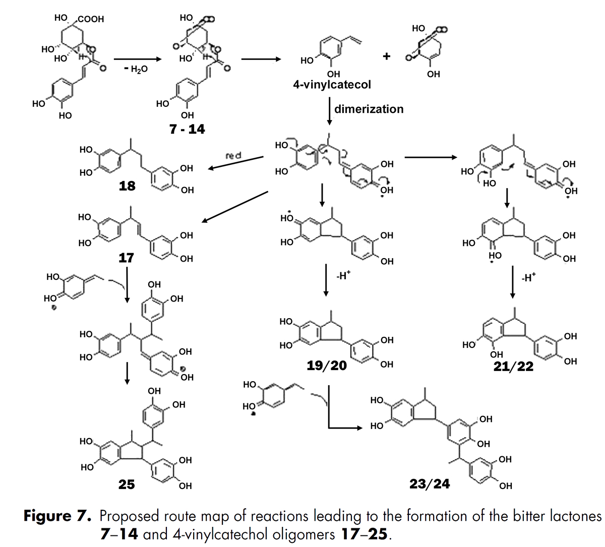 ⇒ higher 4-vinylcatechol oligomers, 적어도 heptamer (七量体)까지가