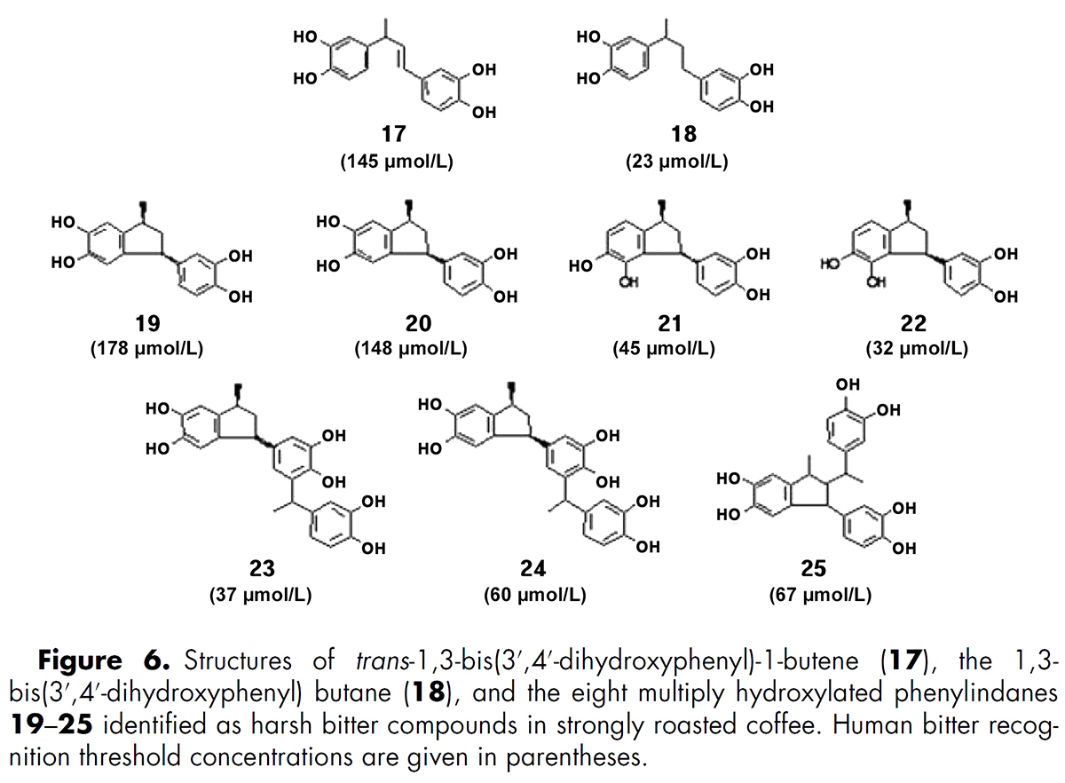 ⇒ medium roasted coffee에서 key bitter constituents로 식별되었다. [34] - 센서리 연구들은