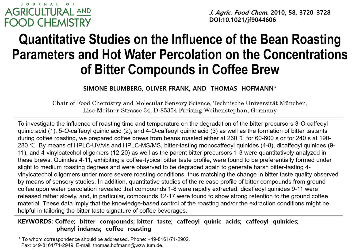 (11) Frank, O.; Blumberg, S.; Krümpel, G.; Hofmann, T.