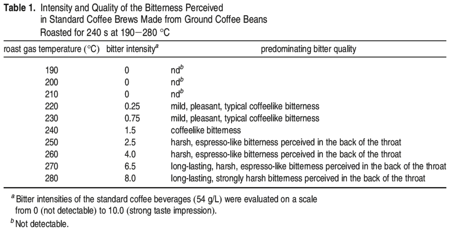 bitter tastants의 형성에 대한 roasting time과 temperature의 영향을 탐구하기 위해, 우리는