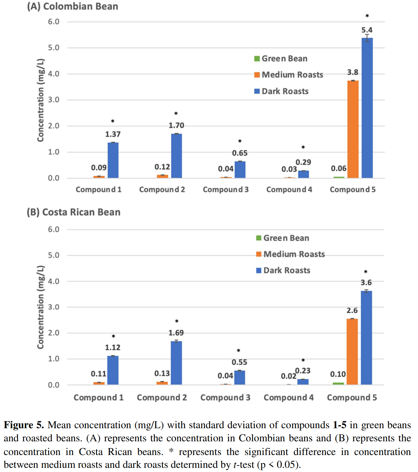 - 콜롬비아산과 코스타리카산 두 종류의 아라비카 커피 생두는 Coffee Bean Corral (미시시피주 매디슨)에서 공급받아, 선정된 화합물들의 생성에 로스팅 프로세스가 미치는 영향을 평가했다.