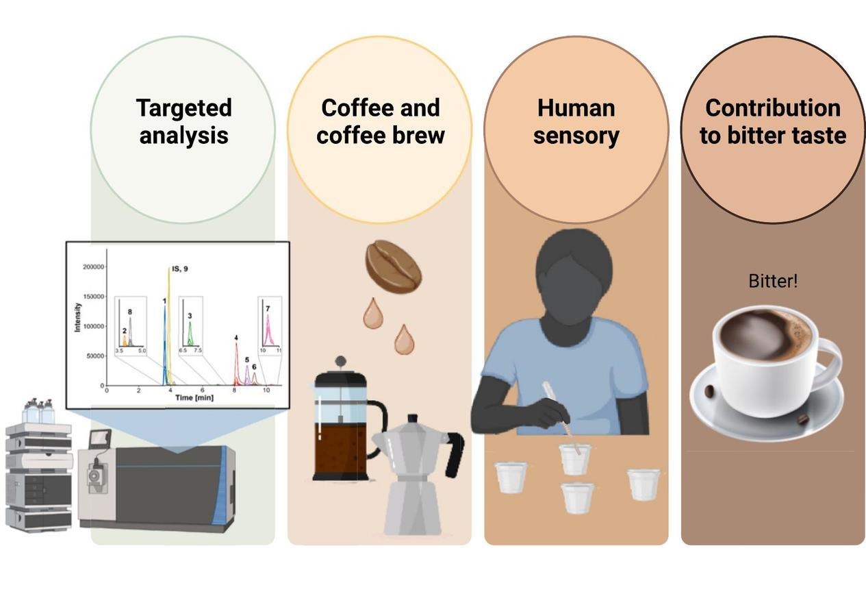 뮌헨 공과대학교 라이프니츠 식품 시스템 생물학 연구소 (the Leibniz Institute for Food Systems Biology at the Technical University of Munich) 연구진은 이 질문에 대한 해답에 한 걸음 더 다가갔다. 로스팅 된 아라비카 커피에서 새로운 쓴맛 화합물군을 발견하고, 이 화합물들이 커피의 쓴맛에 어떤 영향을 미치는지 조사했다. 또한, 개인의 유전적 소인(genetic predisposition) 또한 이러한 로스팅 물질의 쓴맛을 결정하는 데 영향을 미친다는 사실을 최초로 입증했다.