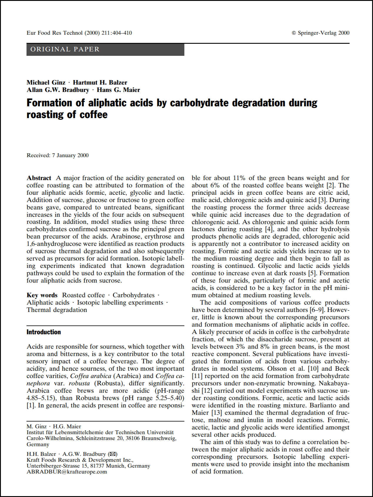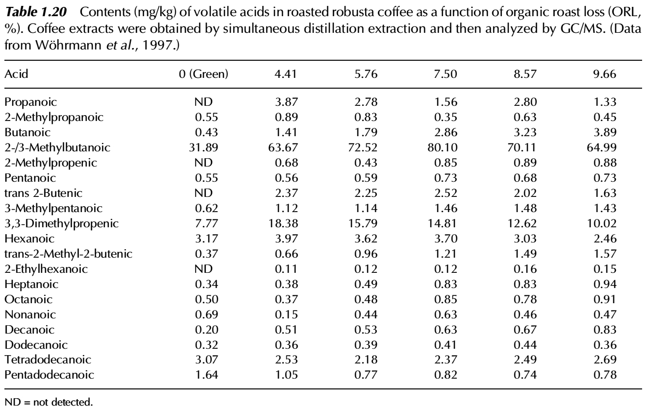 그후로 로스팅이 진행됨에 따라 더 작은 감소가 이어졌다 (Balzer, unpublished data).
