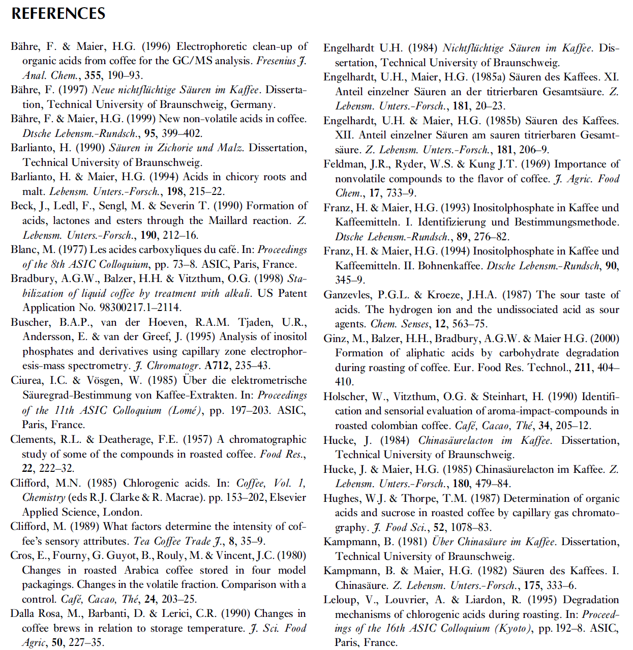 - Green coffee 내의 acids에 관한 초창기 데이터는