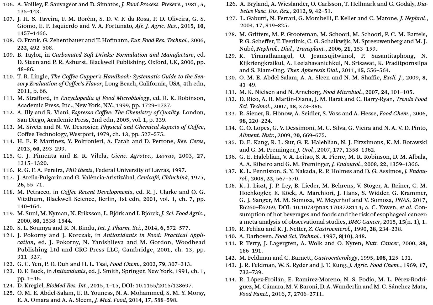 ⇒ 신장(kidneys)내 결석 생성과 같은 어떤 병증들을 유발할 수 있다 [135-137]; - 커피의 경우에는,
