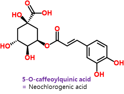 카페익산(caffeic acid)의 아로마틱 고리들(aromatic rings)의 존재에 의해 설명되어질 수 있다.