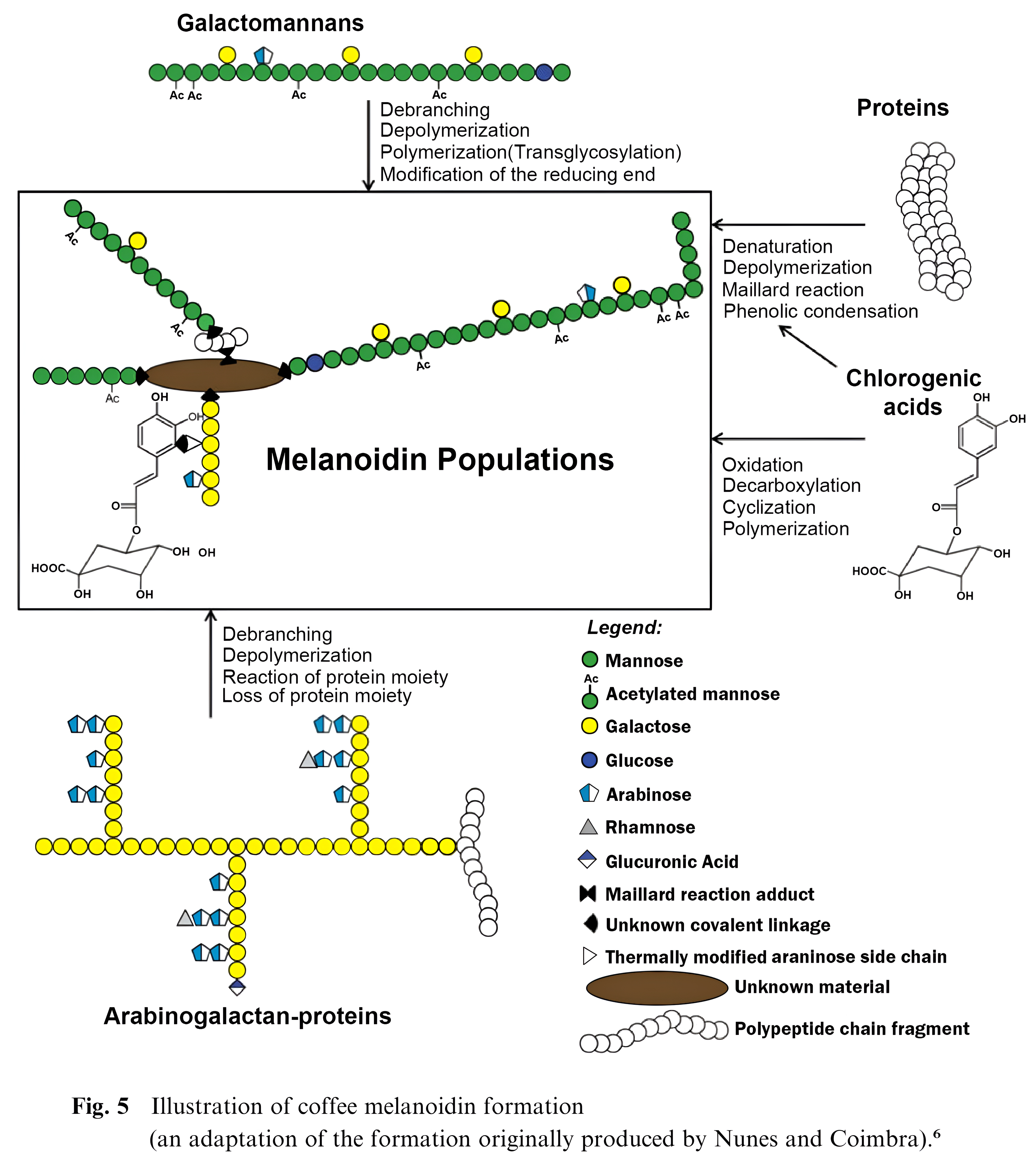 - 모든 노력들에도 불구하고, 커피 멜라노이딘들의 화학 구조는 대체로 아직 알려지지 않은 채 남아있다.