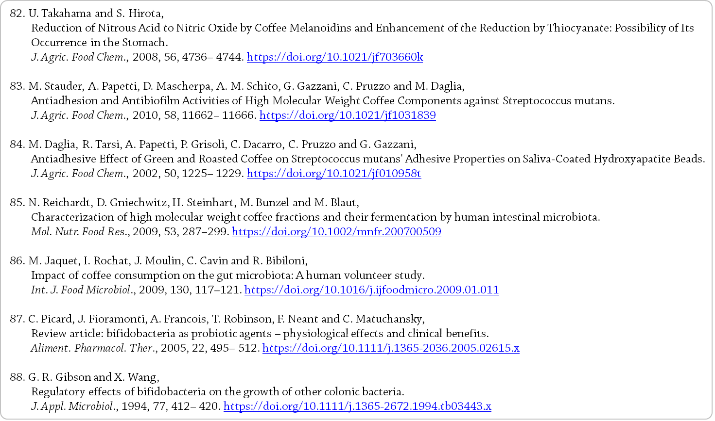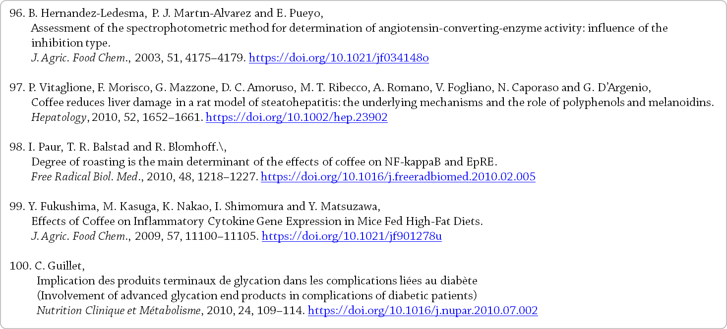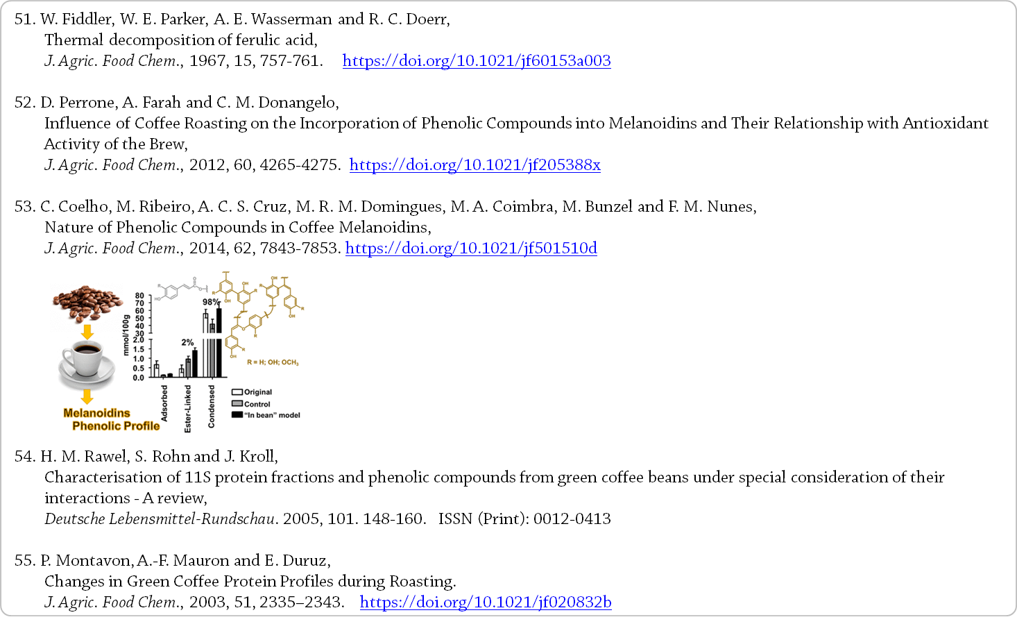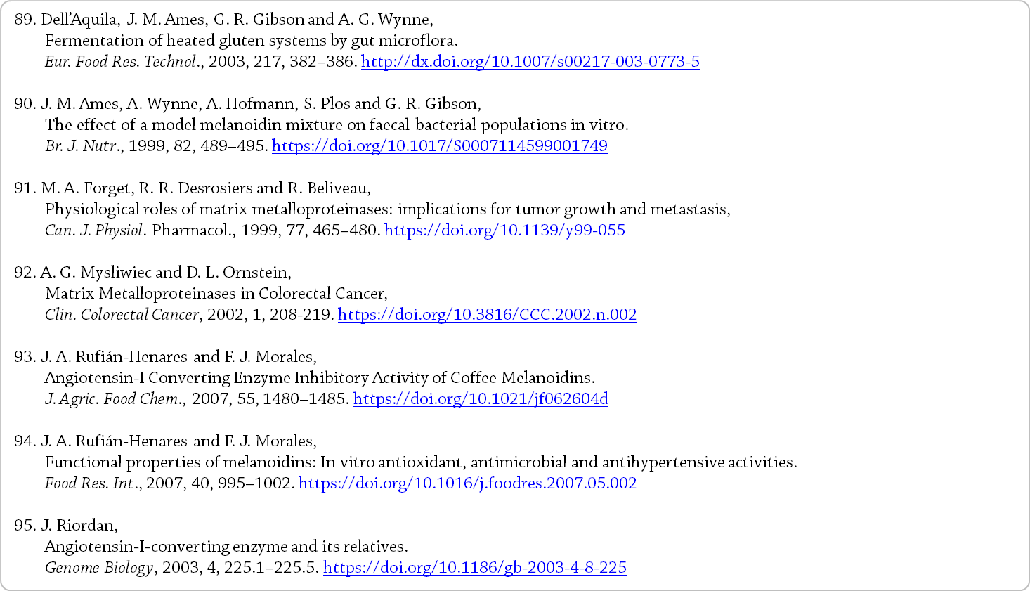 빵과 함께, 인간의 식단에서 멜라노이딘의 주요 공급원으로 간주된다 [4]. - 본 장에서는 커피 음료 멜라노이딘에 대해 알려진 다음과 같은 것들에 대한 개요를 제공한다.