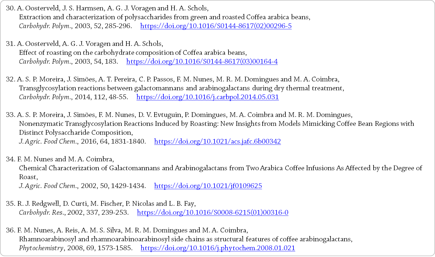 ⇒ 커피 생두 AGP의 일부가 단백질 부분을 잃어 로스팅 중에 변형되었을 수 있다 [14]. - Figure 29.1에서 볼 수 있듯이,