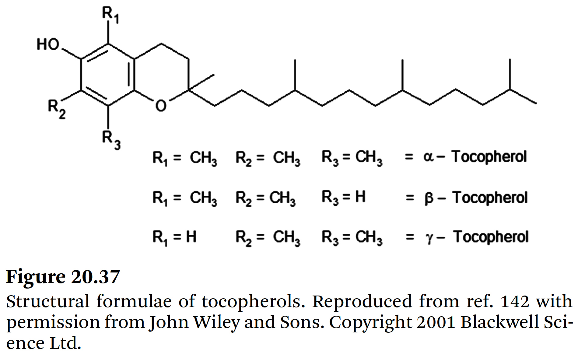 ⇒ 추정된 성분 중 일부만 Zahm et al. [140]에 의해 확인되었다 (Figure 20.44). - 이들을 상용 표준 화합물들 및 문헌의 질량 스펙트럼들과 비교했을 때,