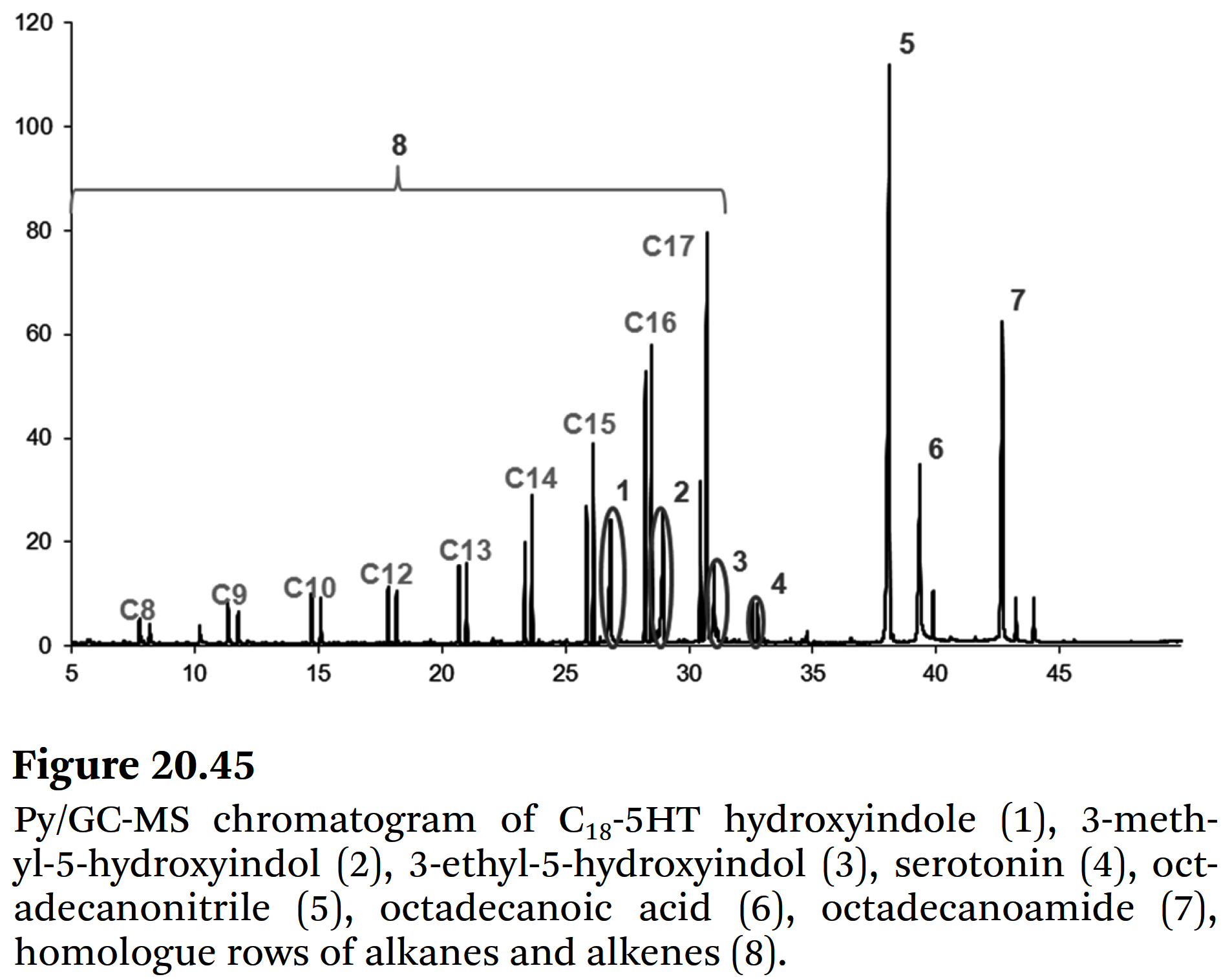 - Figure 20.45에서, C18-5HT의 Py/GC-MS chromatogram가