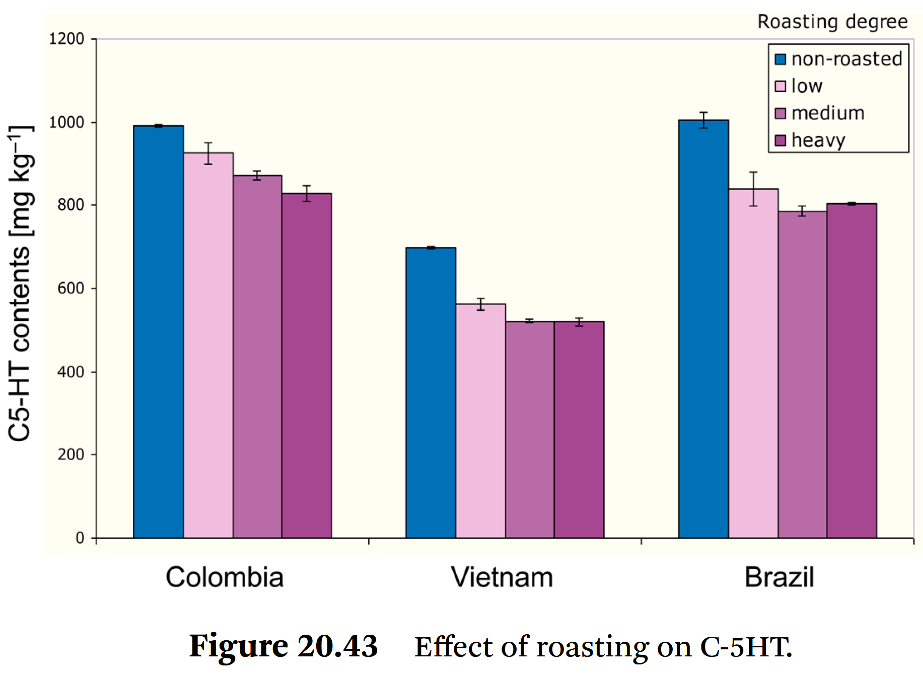 - 또한, C-5HT는 로스팅 과정에서 부분적으로 분해된다 [125,138].