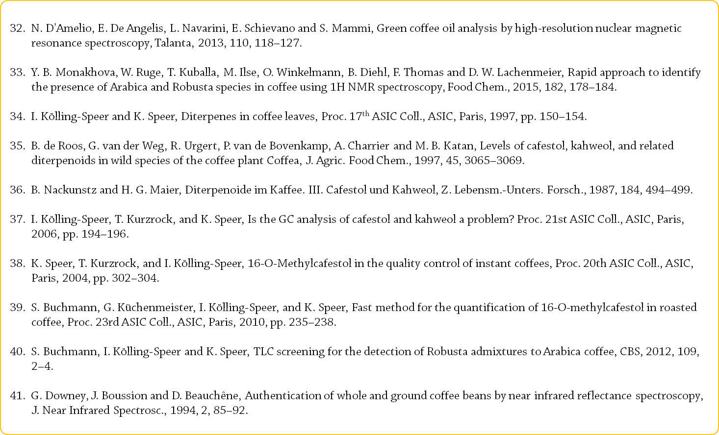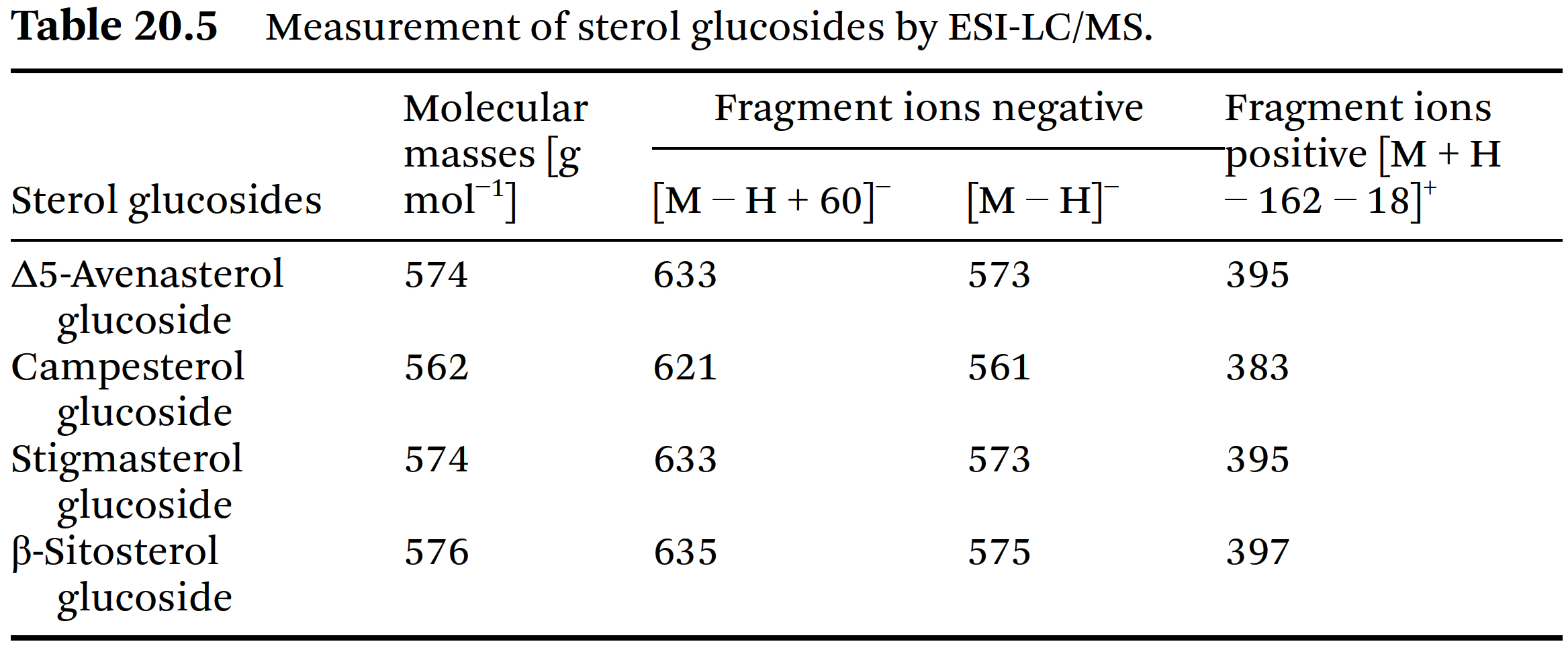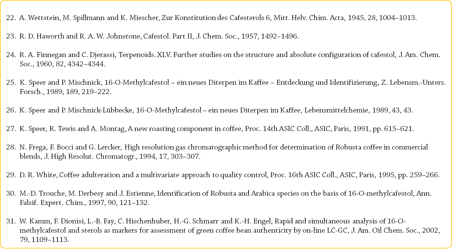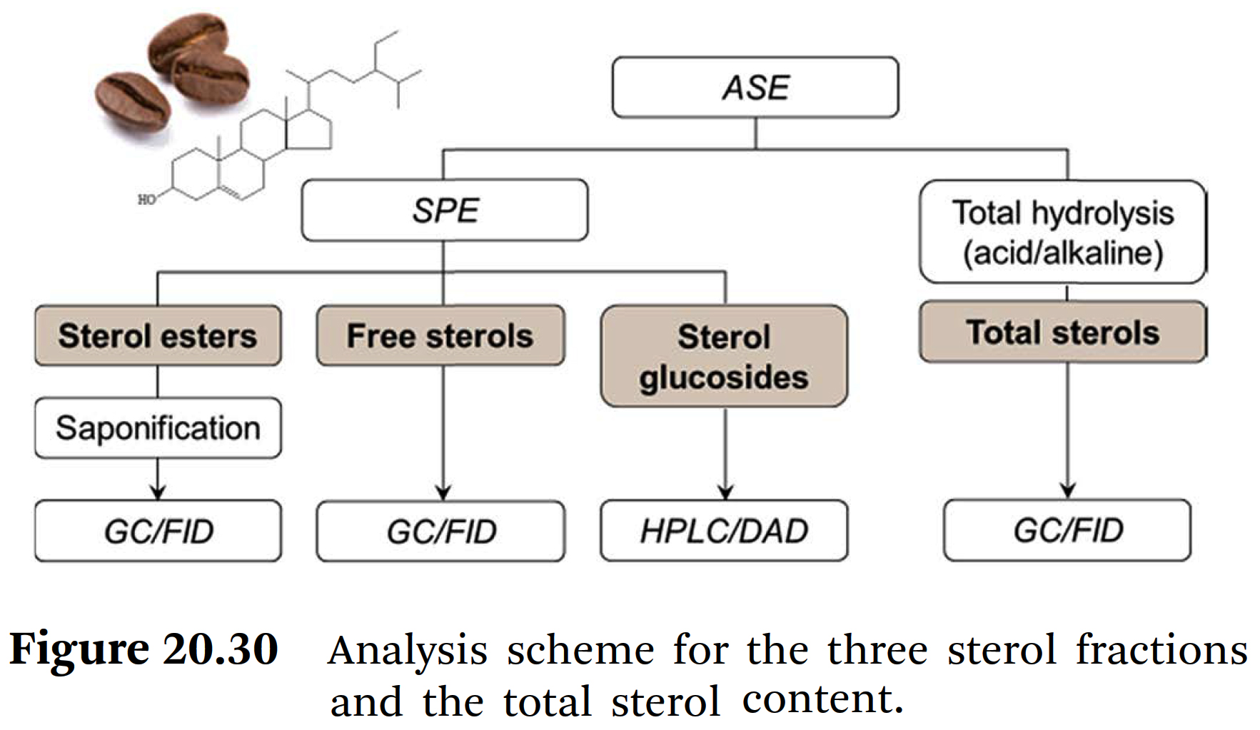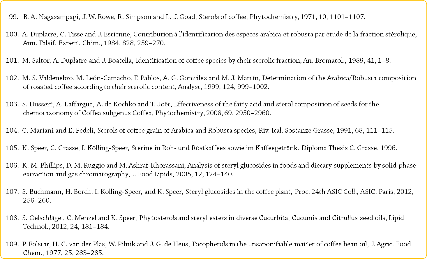 ⇒ 커피 블렌드에 로부스타 원두가 함유되어 있음을 나타내는 신뢰할 수 있는 지표이다. - 不鹼化物 부분의 일부이기도 한 스테롤(sterols) 중에서, 다양한