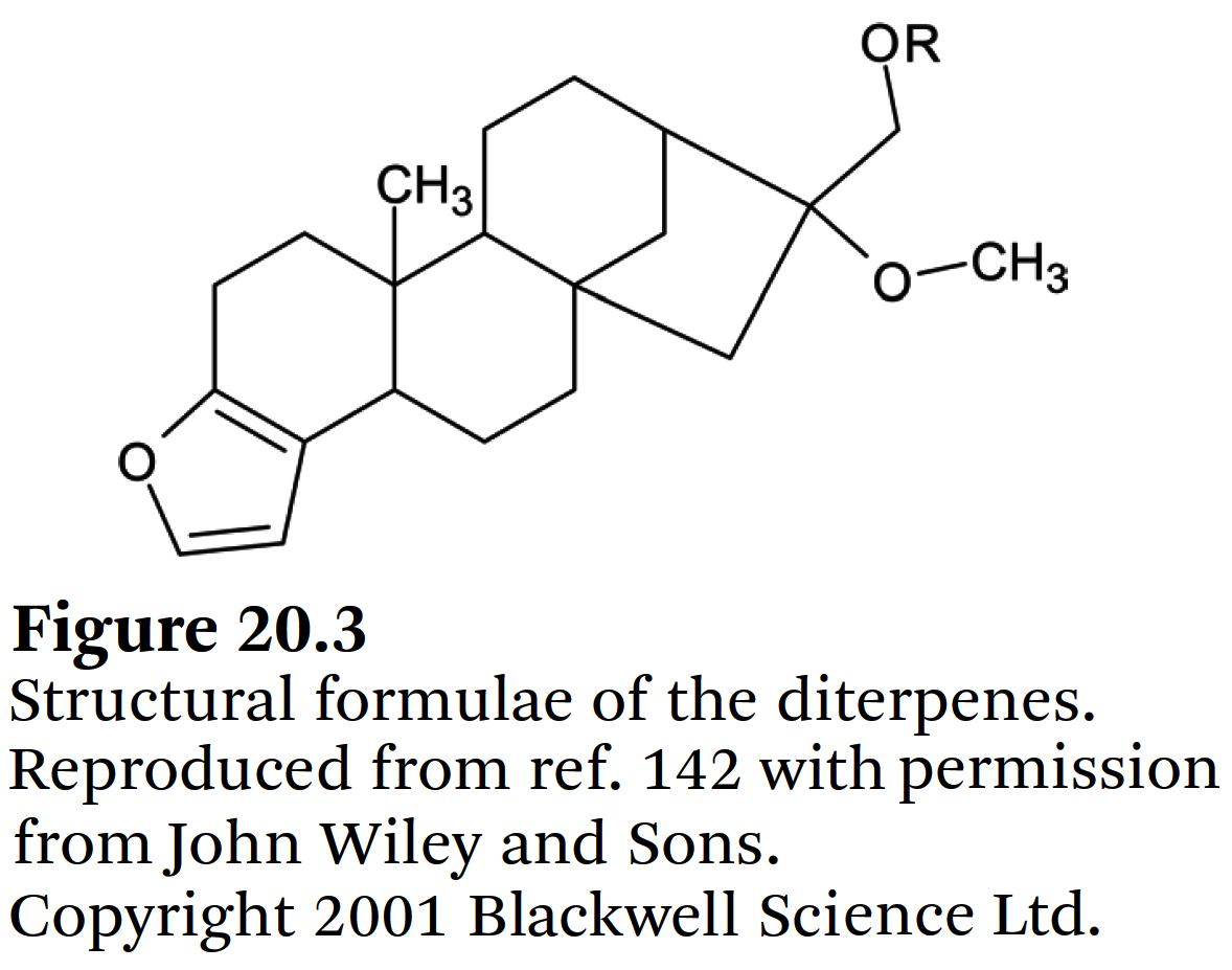 약 20%는 디테르펜(diterpenes)과 에스테르화되어 있으며,
