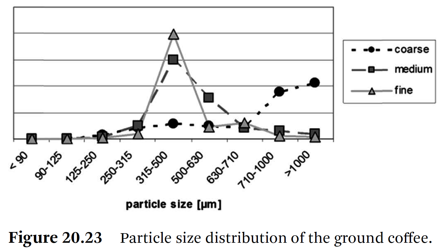 커피가 최종적으로 분쇄되는 입자 크기에 따라 달라진다는 것을 보여주었다. - Speer [6]는