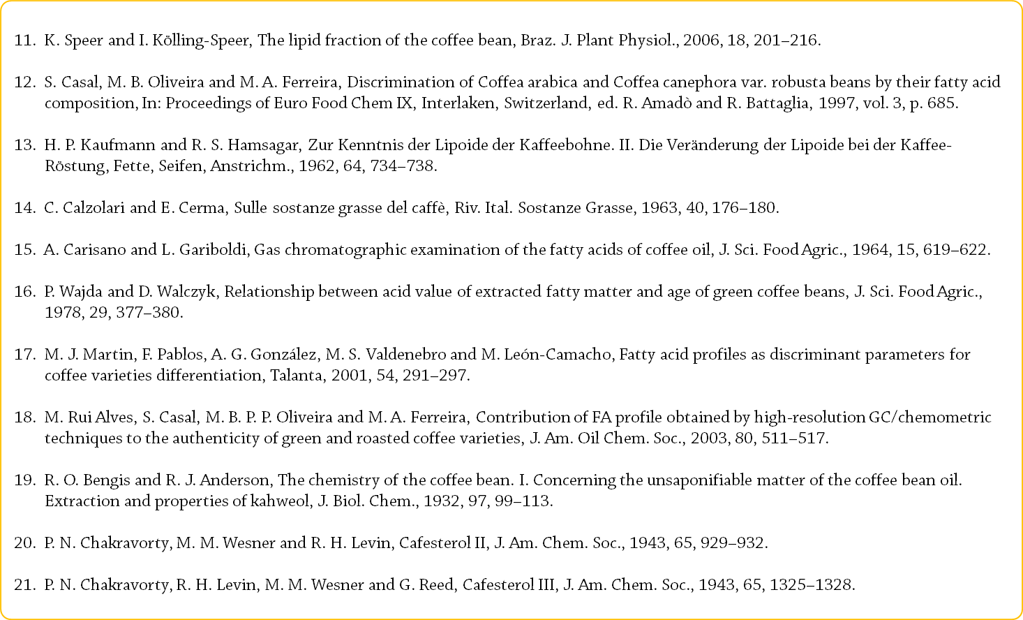 - 커피에 존재하는 遊離脂肪酸(free fatty acids, FFA)은 여러 저자들에 의해 기술되었다 [13–16].