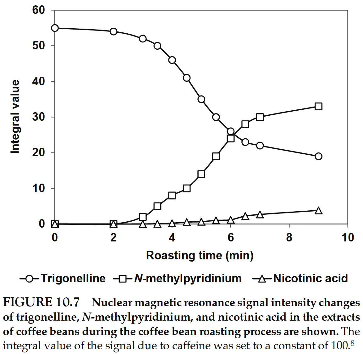추가 로스팅 시 매우 빠르게 분해되는 것으로 나타났다 (Figure 10.4) [10]. - 요약하자면, Figure 10.5에서 볼 수 있듯이,