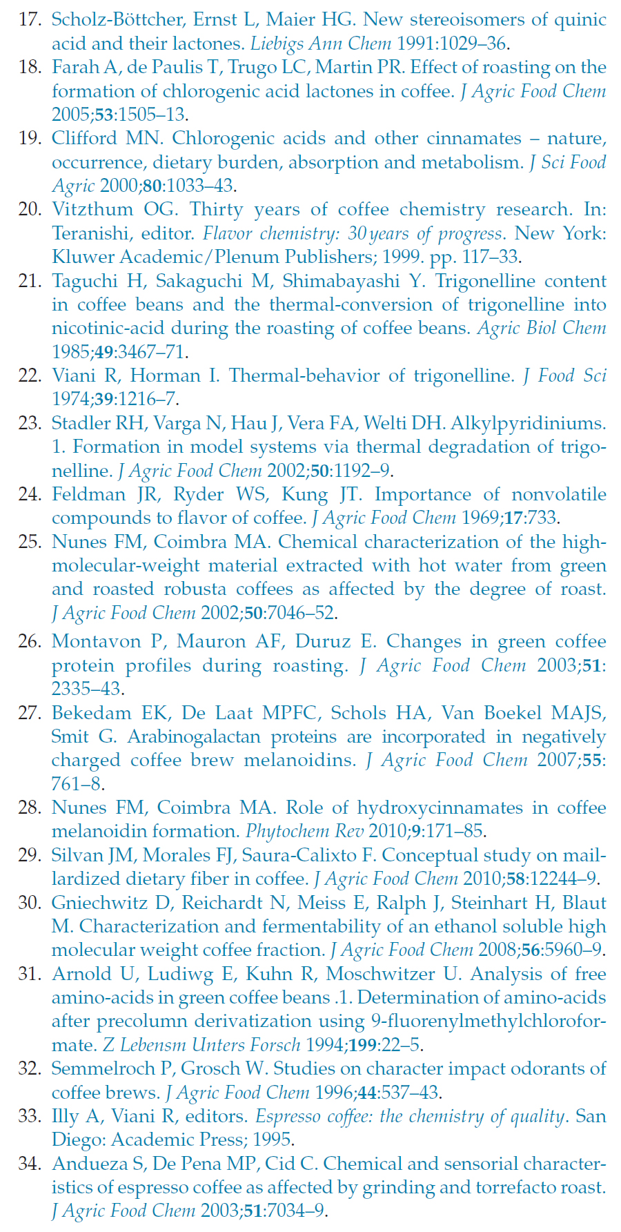 ⇒ 클로로겐산과 아미노산/단백질 조각을 포함한 여러 화합물을 포함하고 있는 것으로 나타났다. - 아라비카 배전 커피에서, 페놀류와 갈색 화합물, 그리고 중합체 물질 사이에 강한 연관성이 관찰되었다.