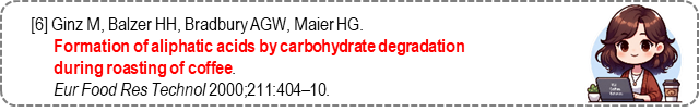 ⇒ 커피 로스팅 중 생성되는 주요 산들은 탄수화물에서 생성된다.