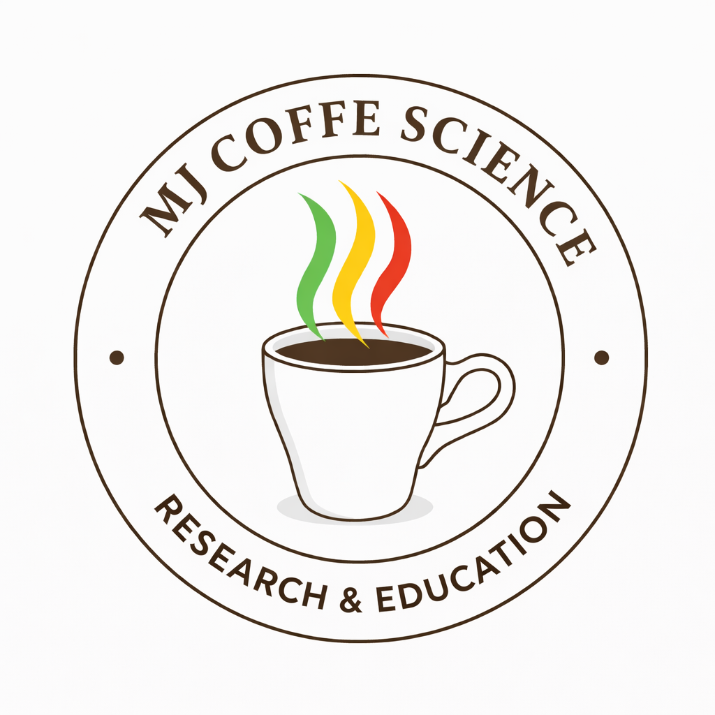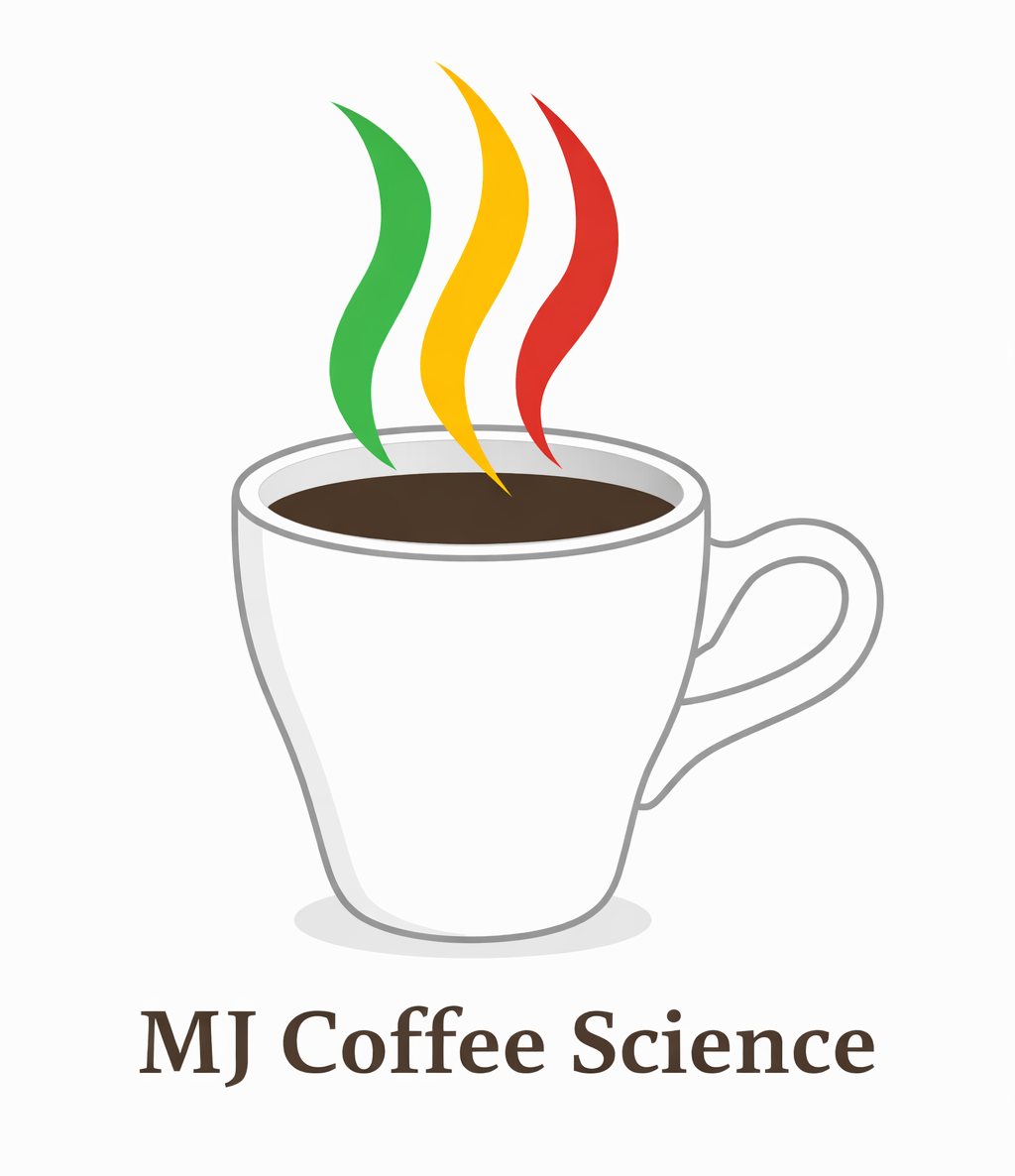 MJ Coffee Science에는 원형 엠블렘이 존재합니다.