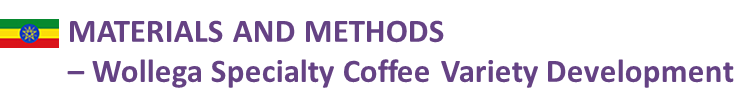 이 중 3~5년 데이터를 기반으로 13개의 유망한 커피 액세션들이 Duchi, Erecha (1700~1800m asl) 및 Mugi (1550m asl)의 세 곳의 지역에, CBD 및 기타 질병에 대한 저항성과 소출 및 품질 특성을 확인하기 위해, 블록당 40~60그루의 나무로 구성된 3번의 복제(replications)를 포함하는 무작위 완전 블록 설계(randomized complete block design, RCBD)로 심어졌다.