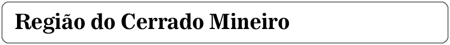 "Região do Cerrado Mineiro"로 구분된 지역은 Instituto Mineiro de Agropecuária의 1995년 4월 27일 법령 165/95에 의해 정의된 지역이며, 위도 16° 37'에서 20° 13', 경도 45° 20'에서 49° 48'로 구분된 지리적 영역으로 구성되고, Triângulo Mineiro, Alto Paranaíba 및 Alto São Francisco 일부 지역과 북서부를 포함한다. |