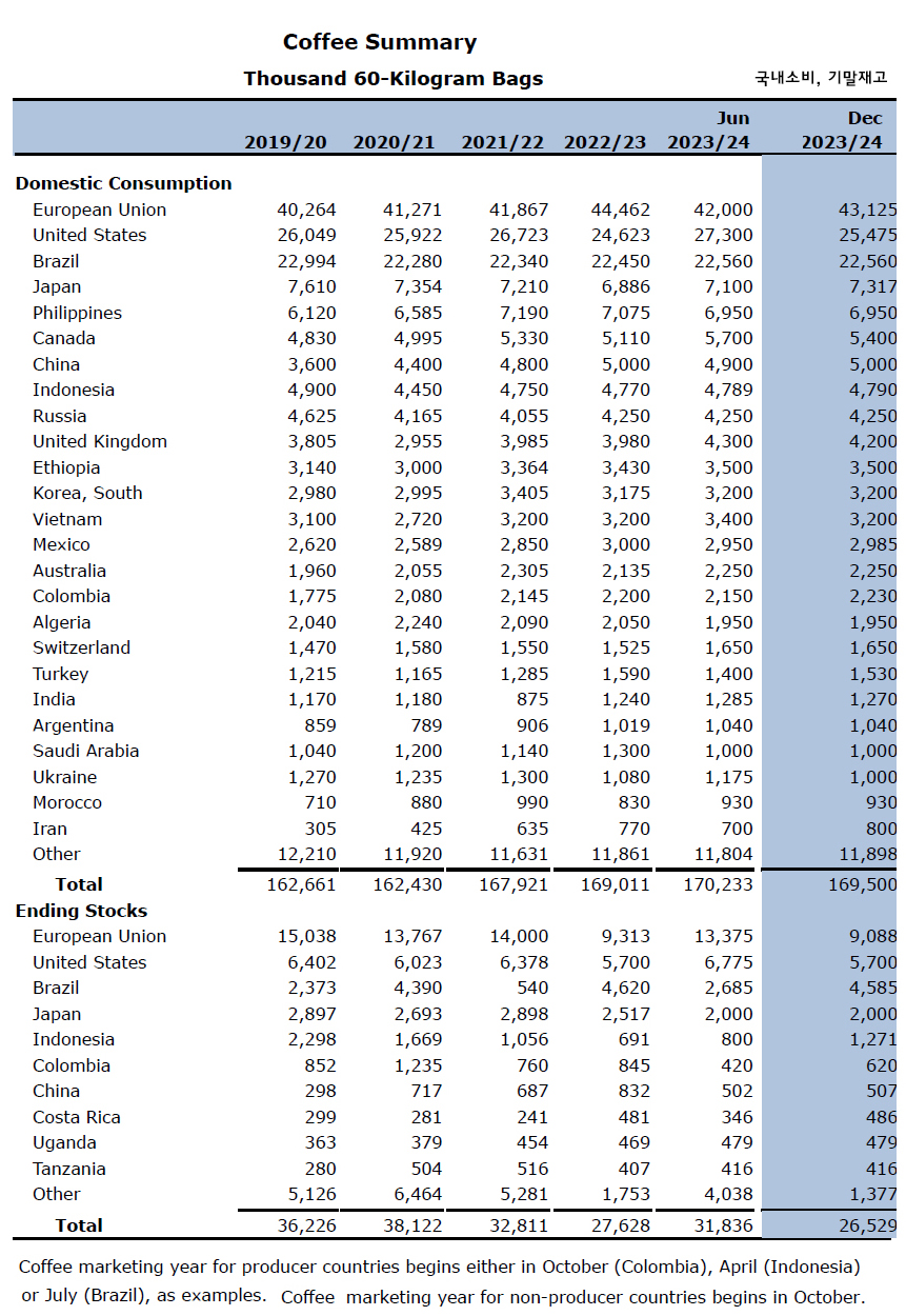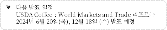 2024년 12월 발표 2024/2025 世界 커피市場과 貿易 (1) | 2024.12.19 |