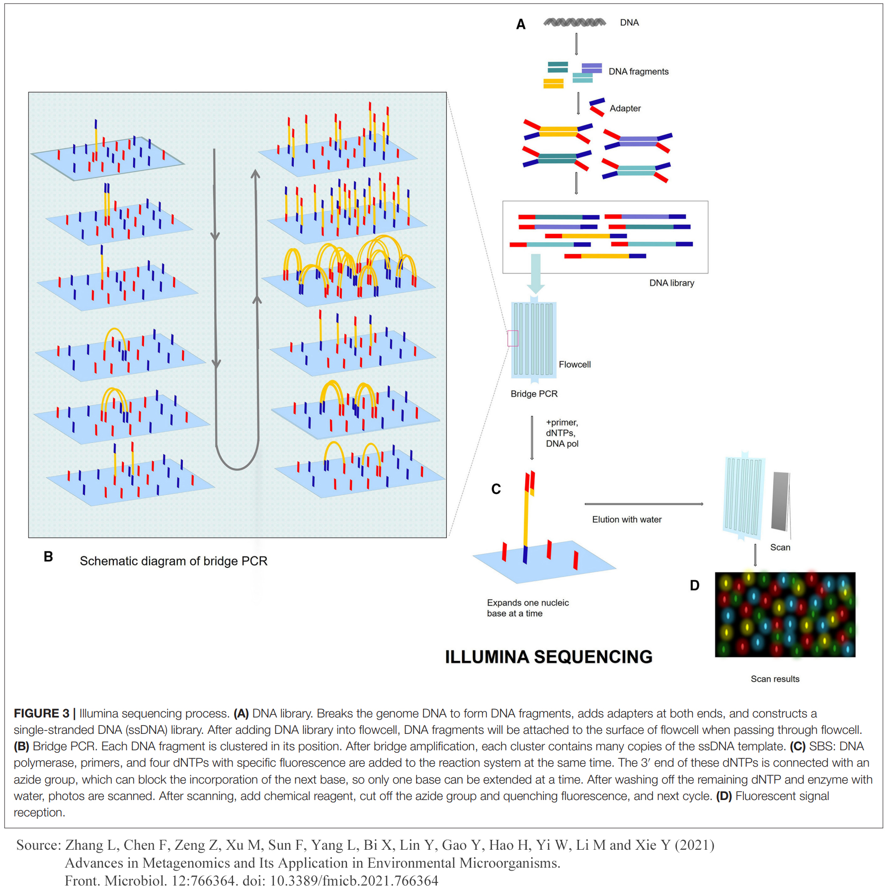 표준 Illumina 시퀀싱은 다음 단계로 나눌 수 있다.