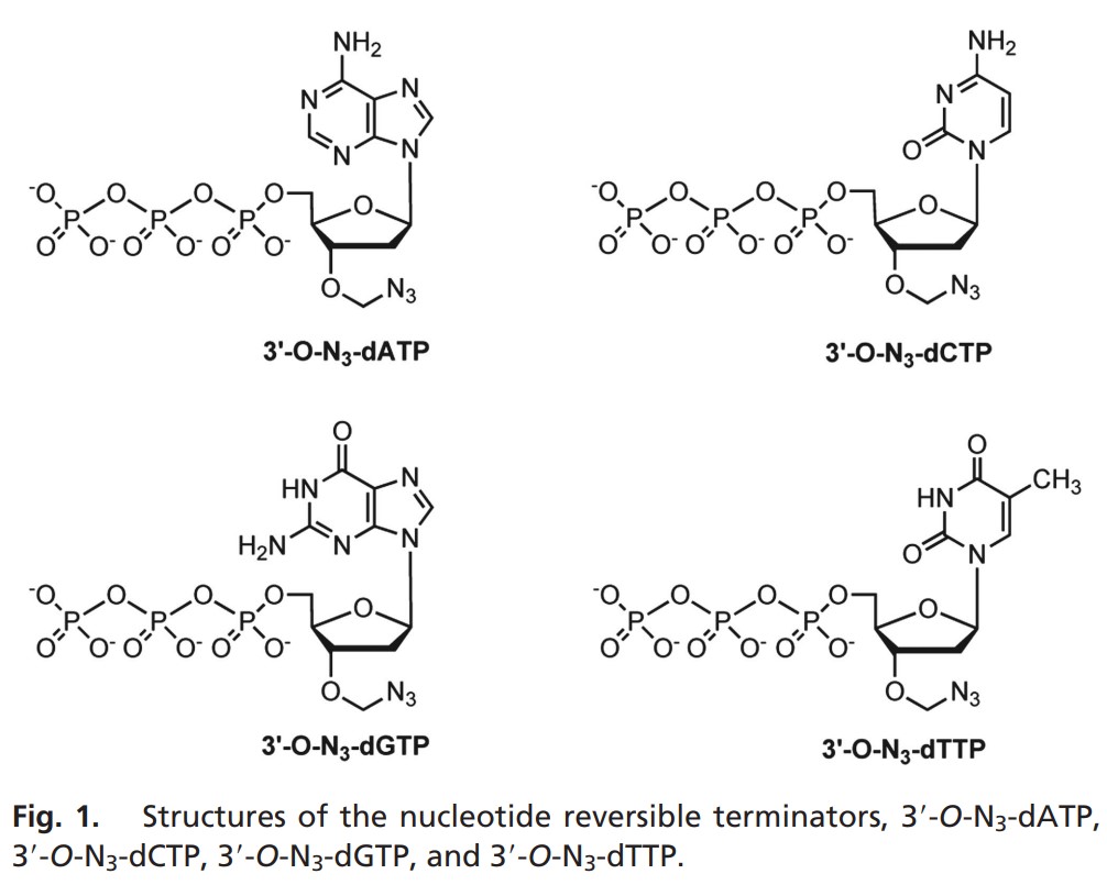 ⊙ Illumina Solexa가 개발하여 사용하는 3'-O-azidomethy reversible terminator이다.