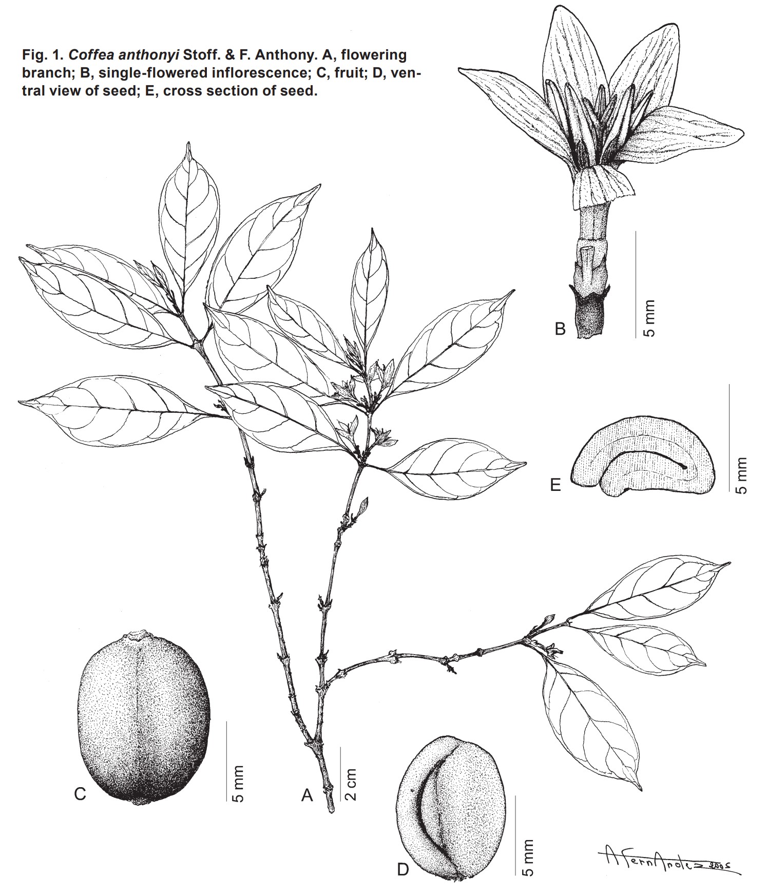 in the Republic of the Congo, at Souanke population, 1999 (Fig. 1). - Diagnosis: Coffea anthonyi differt ab specie