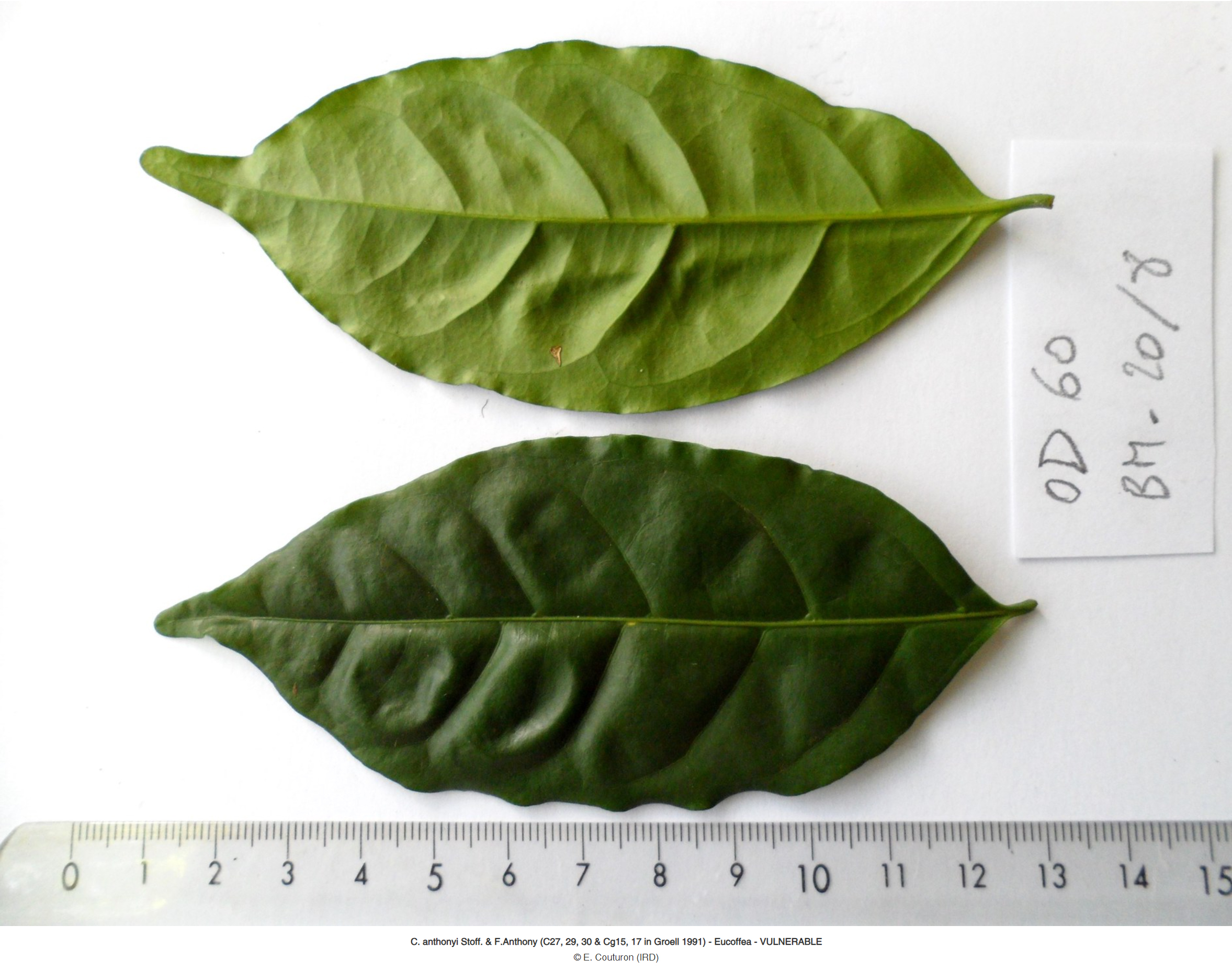 - C. anthonyi의 식물 재료가 주로 몽펠리에의 IRD에서 커피 연구자들에 의해 수년간 재배되고 연구되었기 때문에 많은 출판된 데이터가 존재한다.