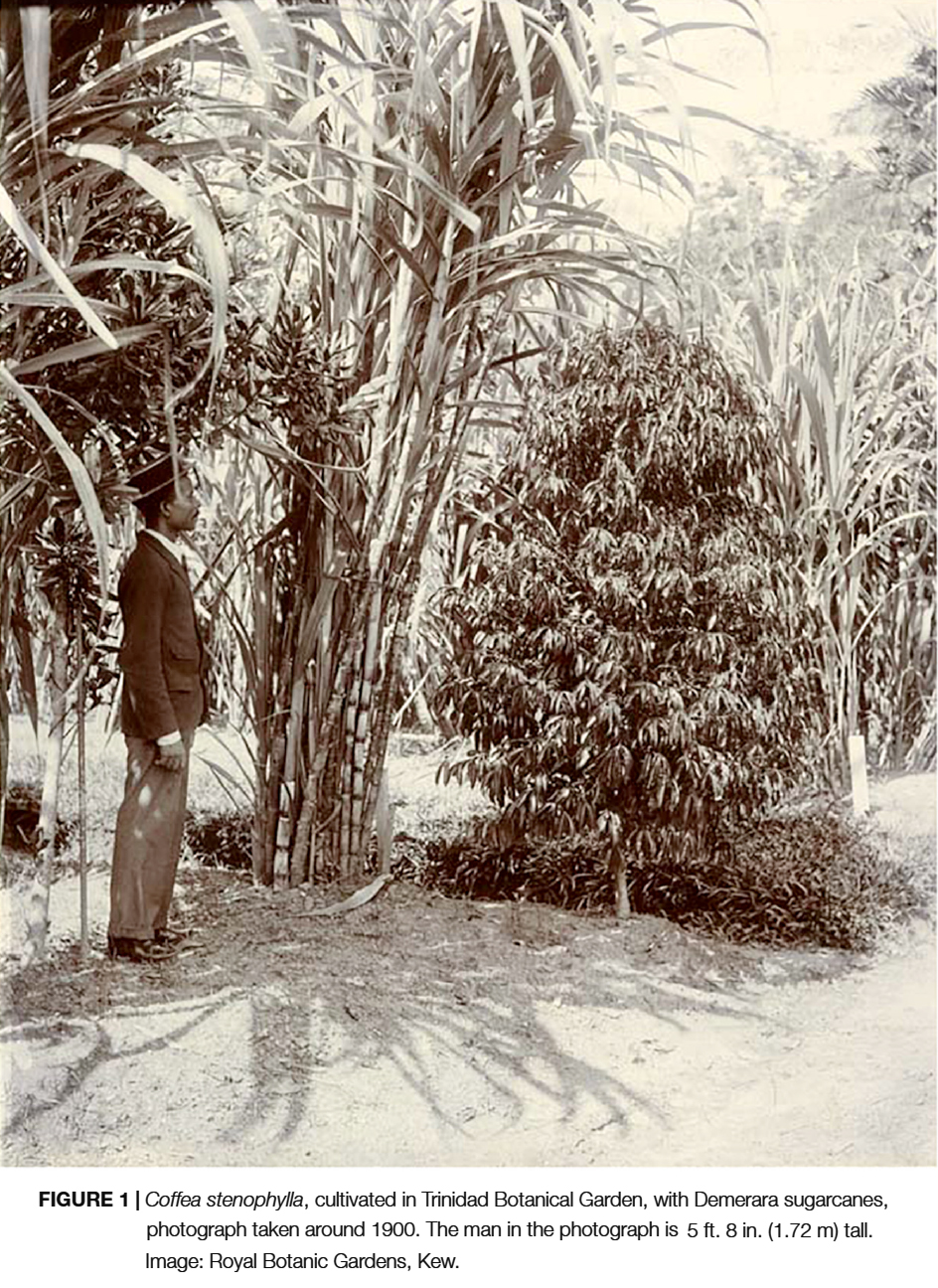 - 이 커피는 C. stenophylla와 거의 같은 시기에 세계 재배에 도입되었고 다른 활용도가 낮은 커피 종의 비교적 빈약한 생산성을 크게 앞지르며 성공을 거두었다 (Davis et al., 2019).