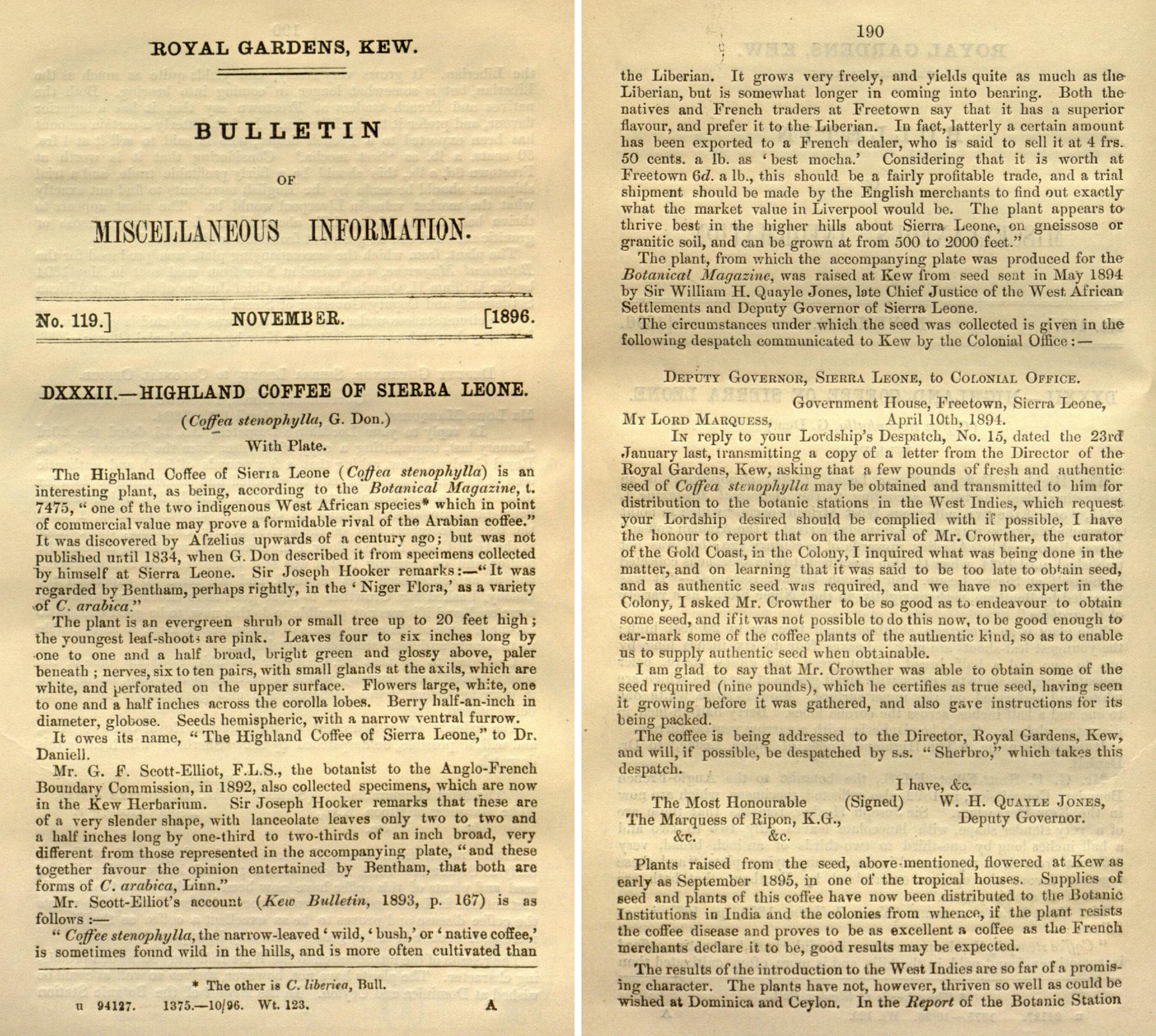 - Hooker, J. D. (1896). Coffea stenophylla. Curtis Bot. Mag 122:7475.