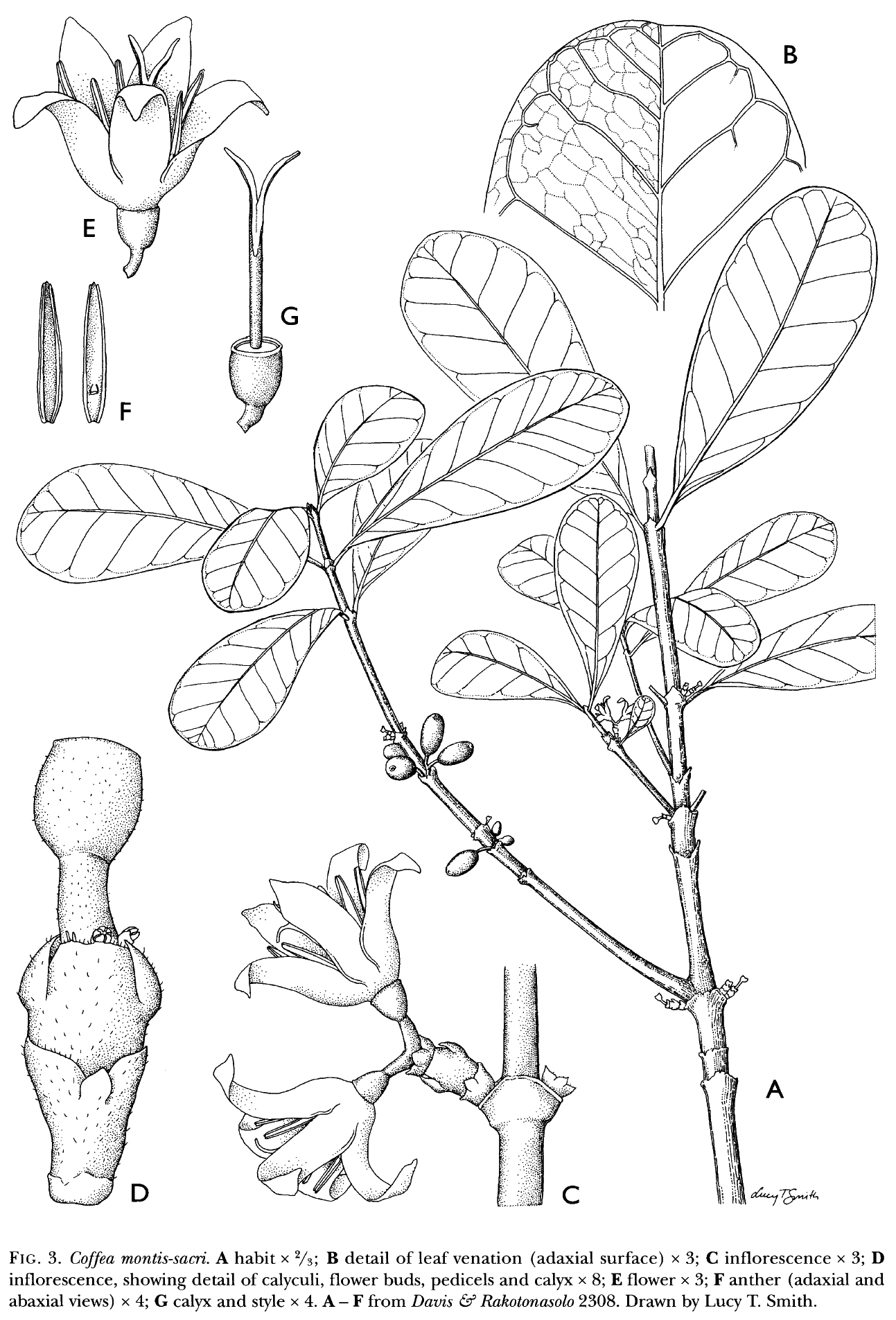 - Davis, A. P. & Rakotonasolo, F. (2000). Three new species of Coffea L. (Rubiaceae) from Madagascar. Kew Bull. 55: 405 - 416.