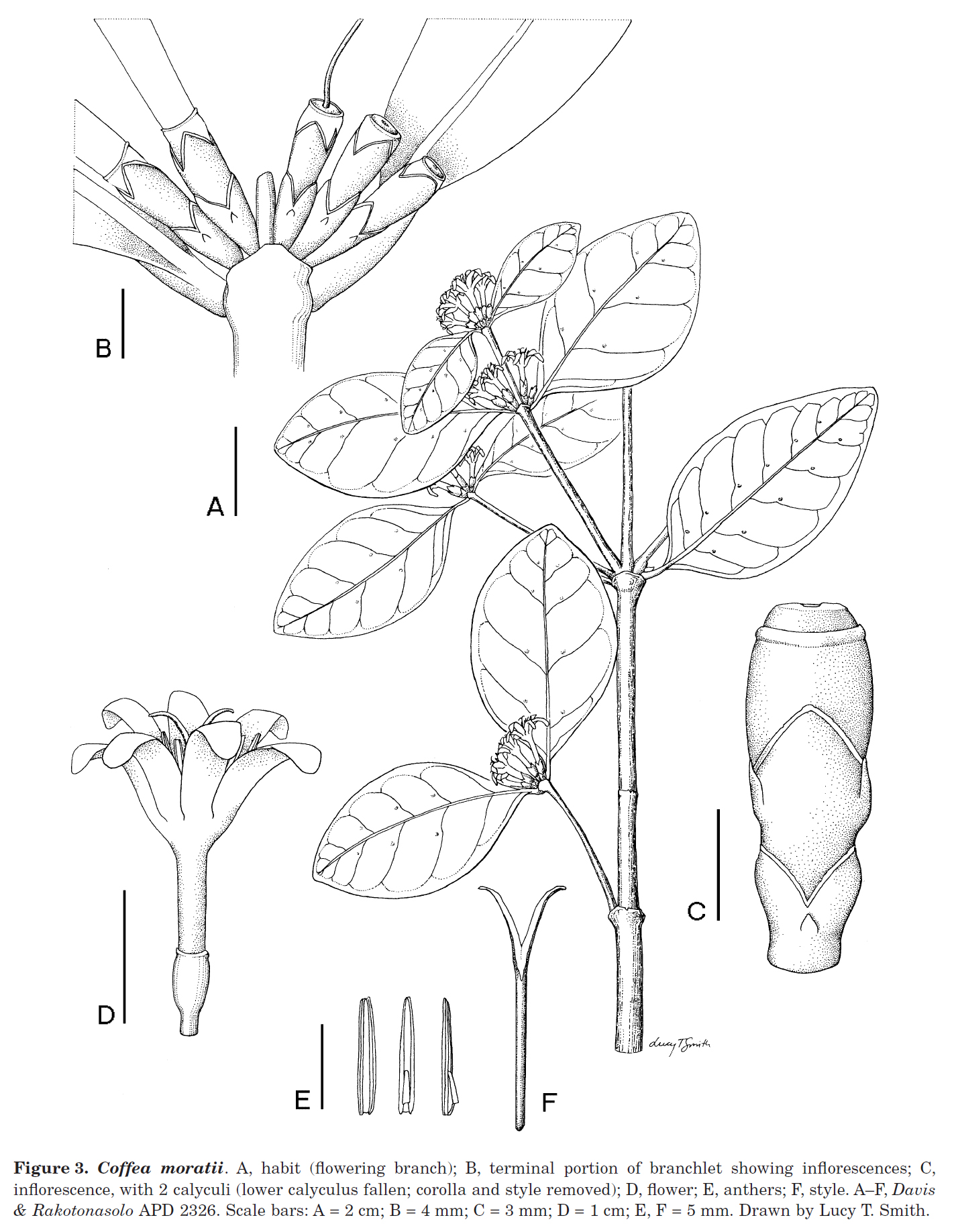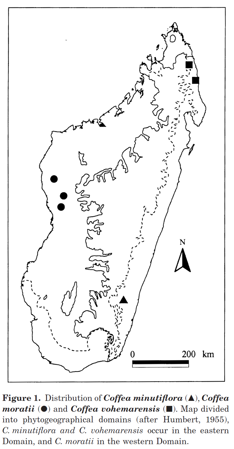 C. moratii의 재배 재료는 Coffee Research Station at Kianjavato (Ministère de la Recherche Scientifique Centre National de Recherche Appliquée au Developpement Rural: FOFIFA)에서 검토되었다; C. vohemarensis는 F. Rakotonasolo가 현장에서 연구했다.