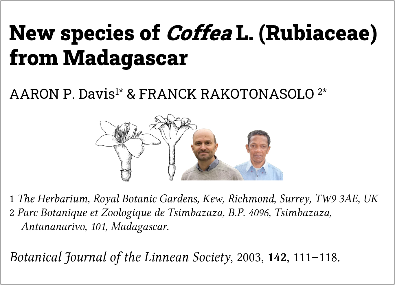 Three new species of Cof- fea (Rubiaceae) from Madagascar. Kew Bulletin 55: 405–416. - Davis AP, Rakotonasolo F. 2001a.