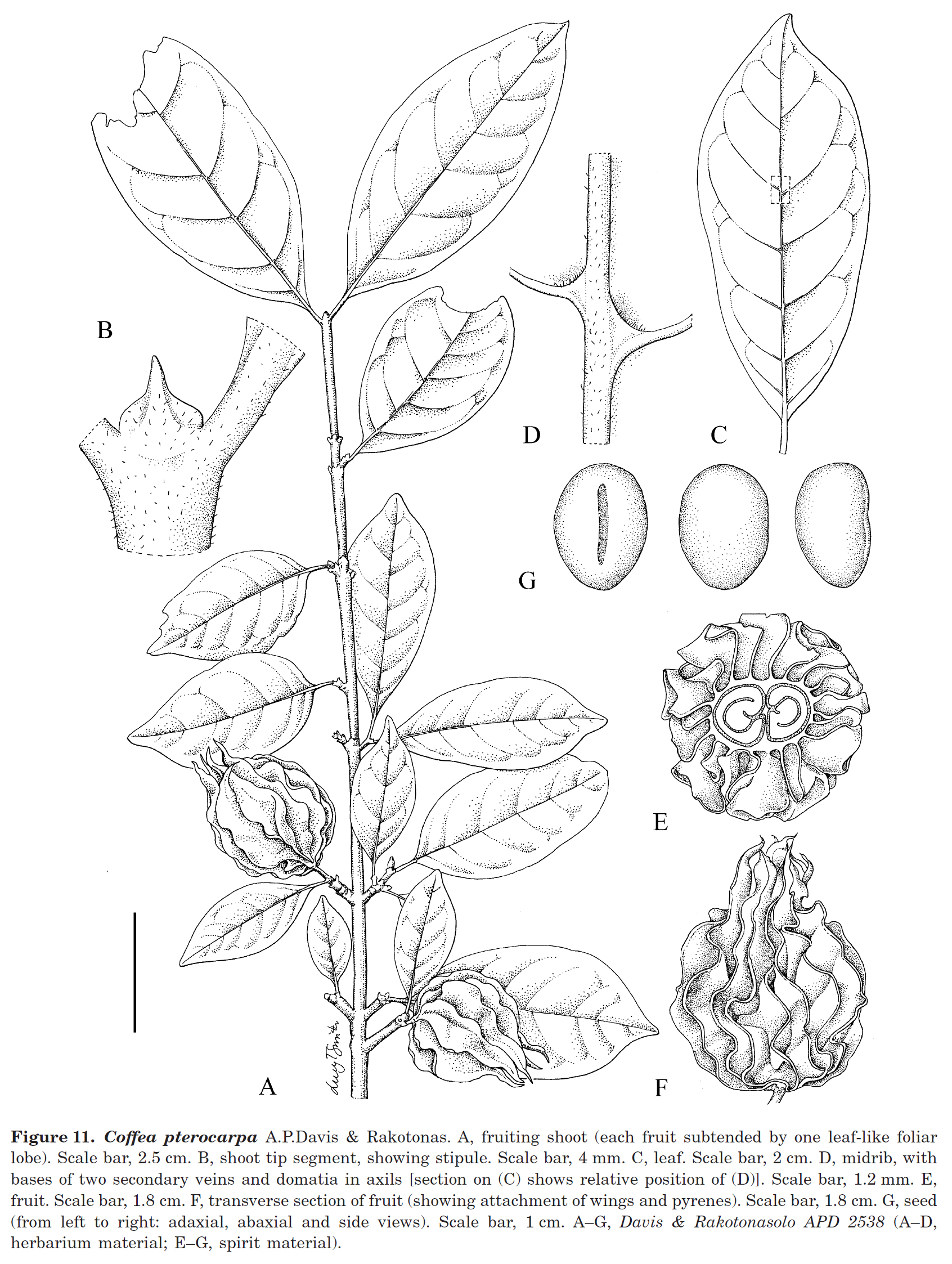 [Coffea pterocarpa A.P.Davis & Rakotonas., Bot. J. Linn. Soc. 152: 500 (2006), ined.]