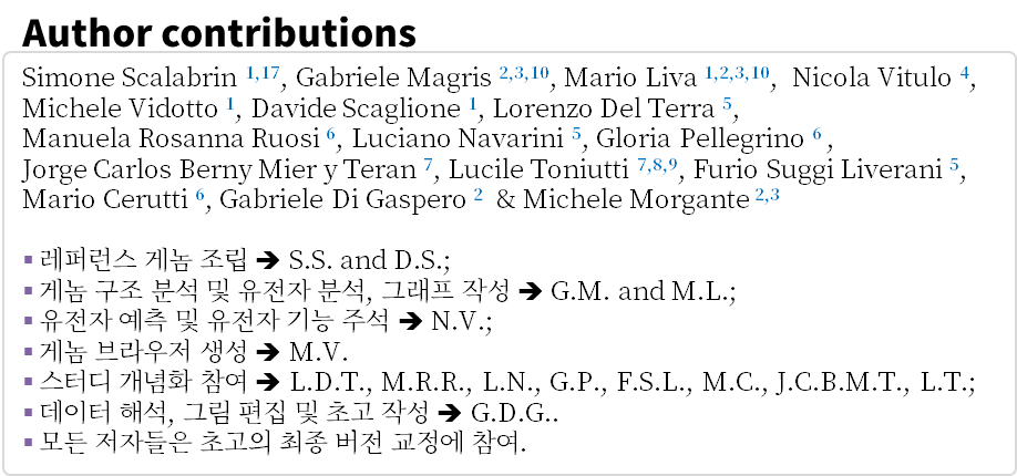 고도로 연속적인 염색체 유사분자(pseudomolecules)로 분해(resolving into)하기에는 아직 멀었다 [8].