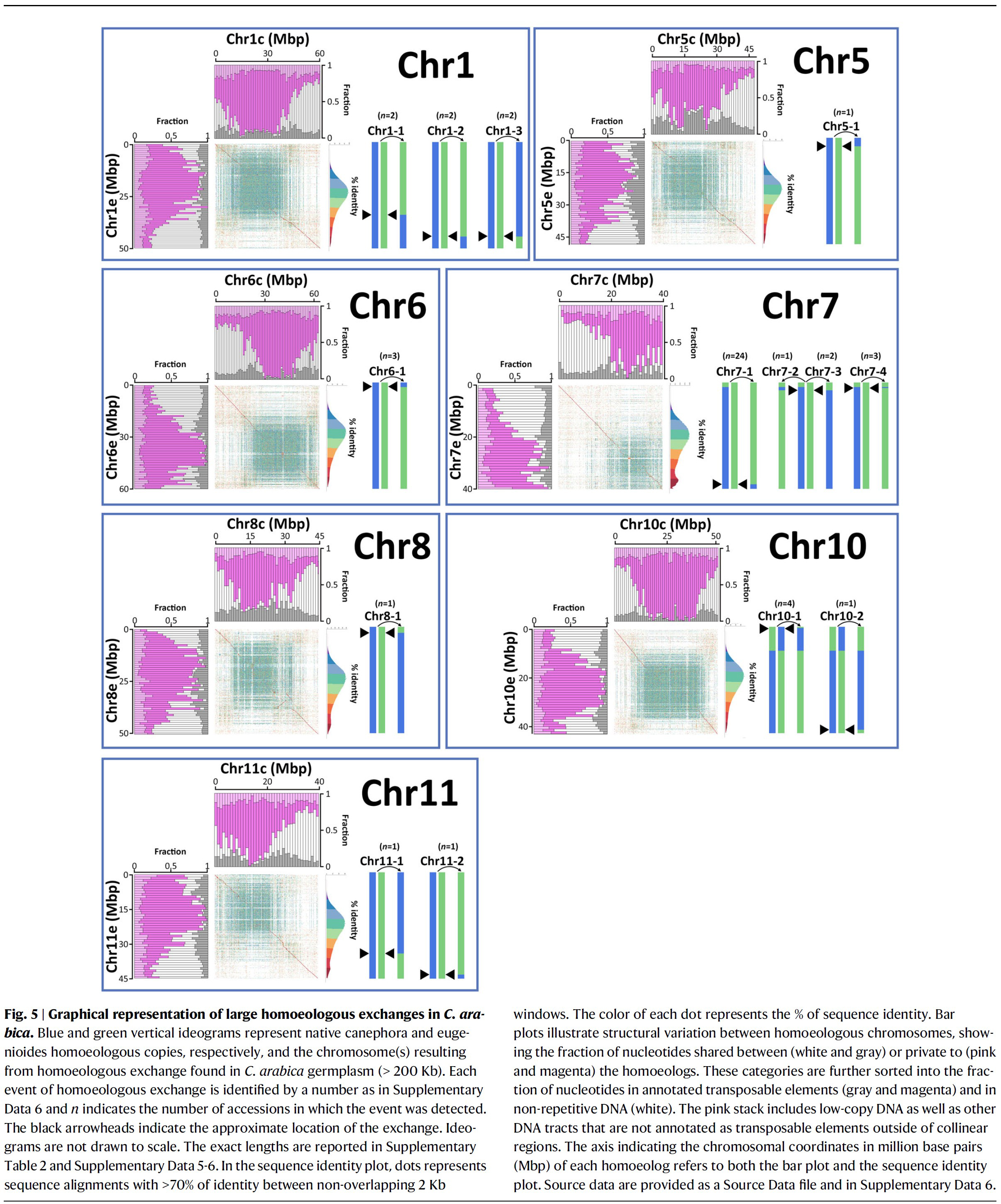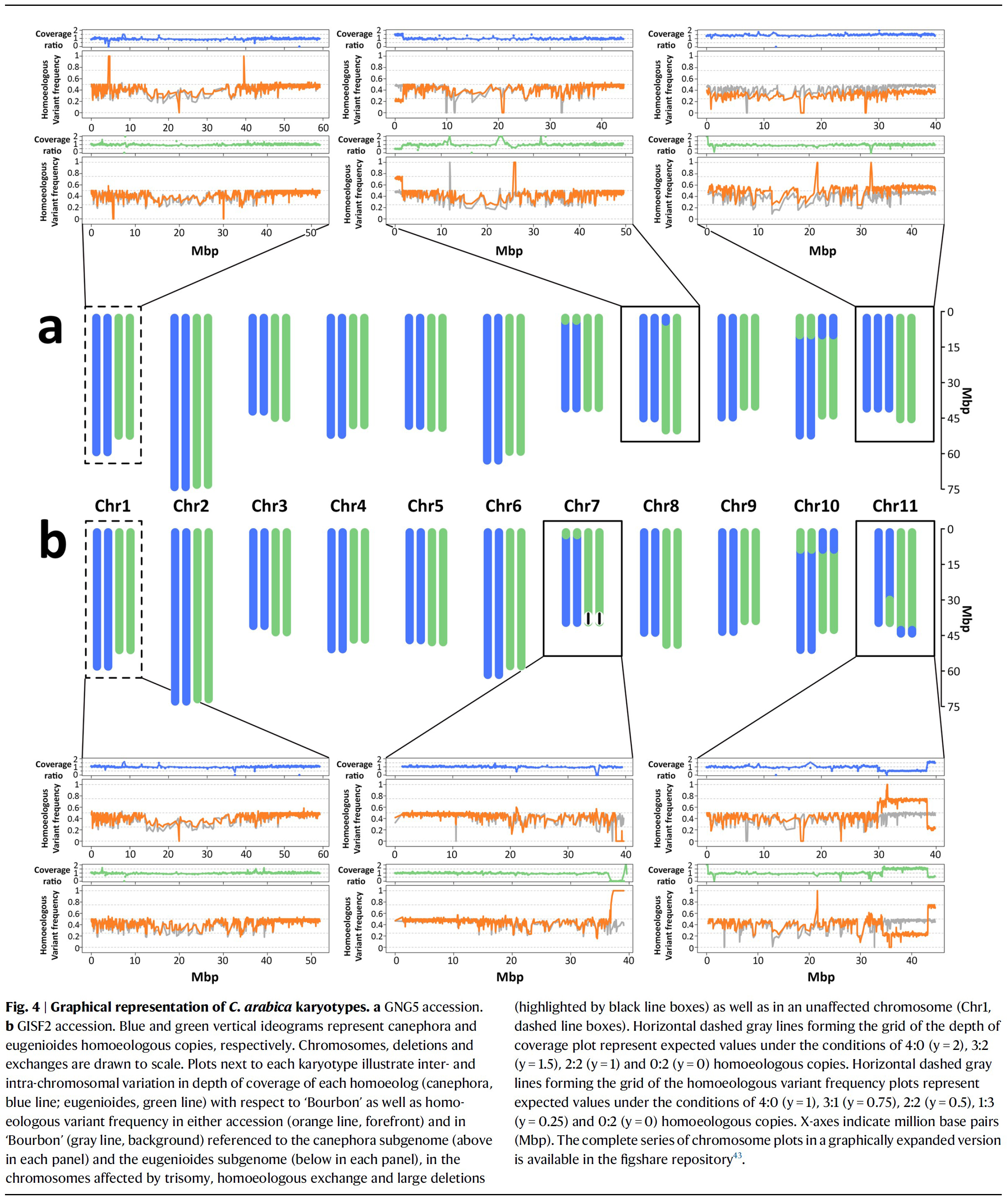 아라비카 커피의 염색체-규모 어셈블리 - 染色體 異常 및 交換